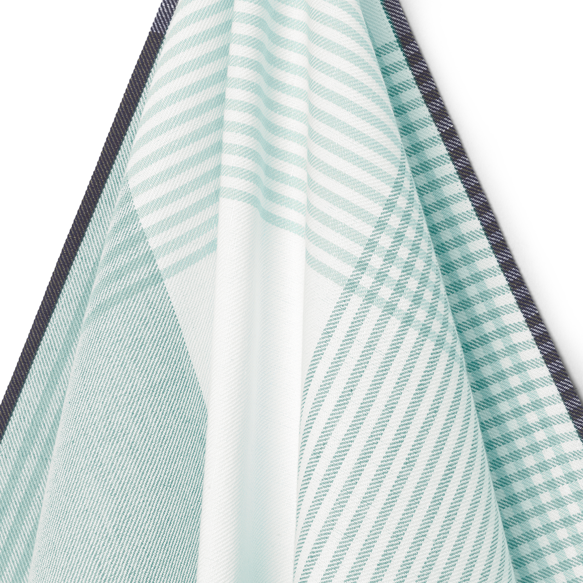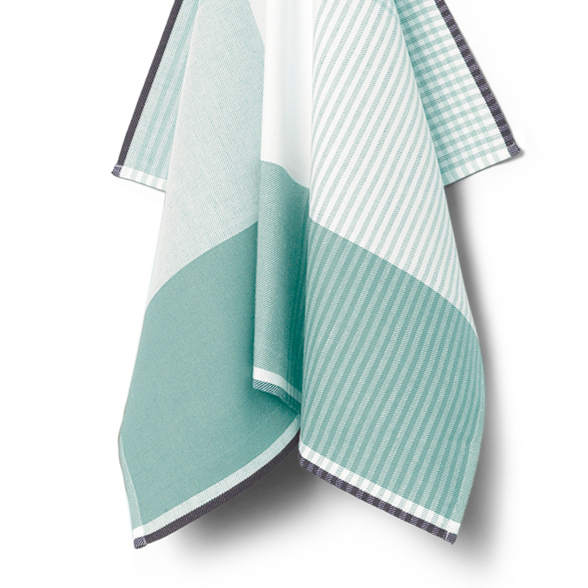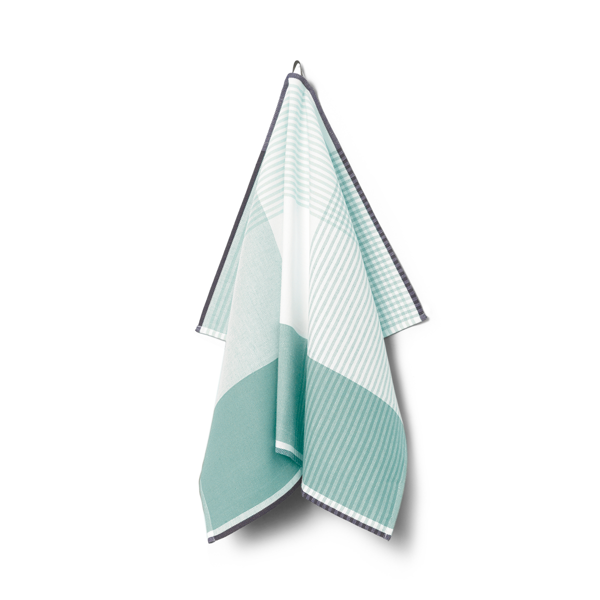 Becker 63 is een klassieke geruite theedoek gemaakt van vierkantjes van verschillende breedtes en kleuren. De elegante en grafische theedoek werd in 1963 ontworpen door wever en ontwerper John Becker. Hij is geweven in een combinatie van 50% linnen en 50% katoen, waardoor hij optimale droogeigenschappen heeft. De heldere blauwgroene kleur Deep Glass is geïnspireerd op de kleur van ruw glas.