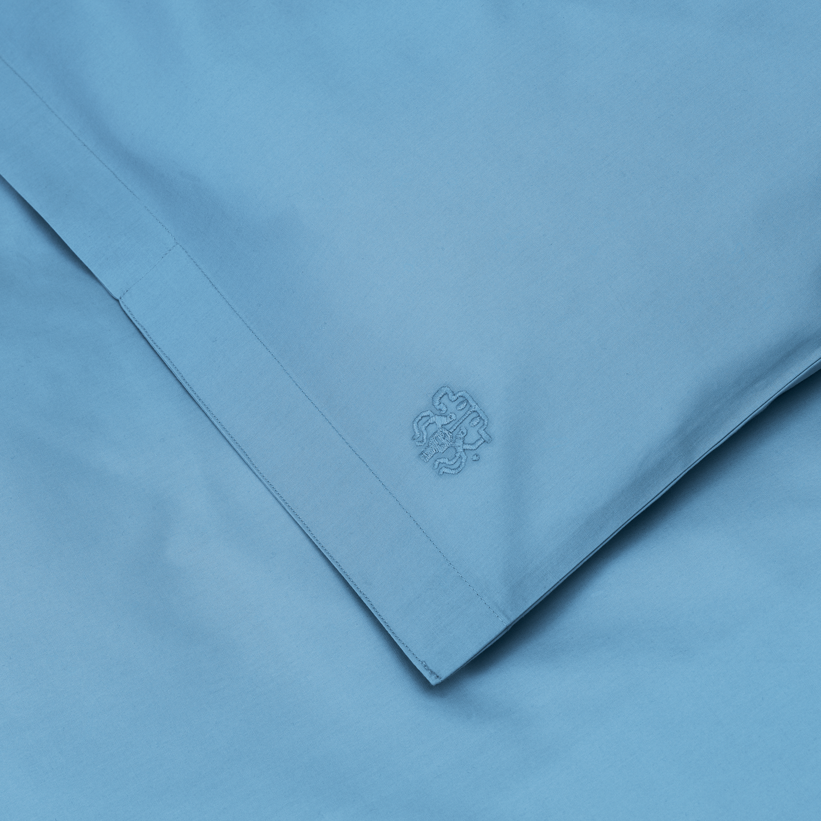 Het dekbedovertrek sluit met bandjes en de kussenslopen hebben een envelopsluiting. De beddenset is voorzien van het iconische logo van Georg Jensen Damask als discreet borduursel. Bright Blue is een verzadigde kleur blauw met verwijzingen naar de heldere zomerlucht.