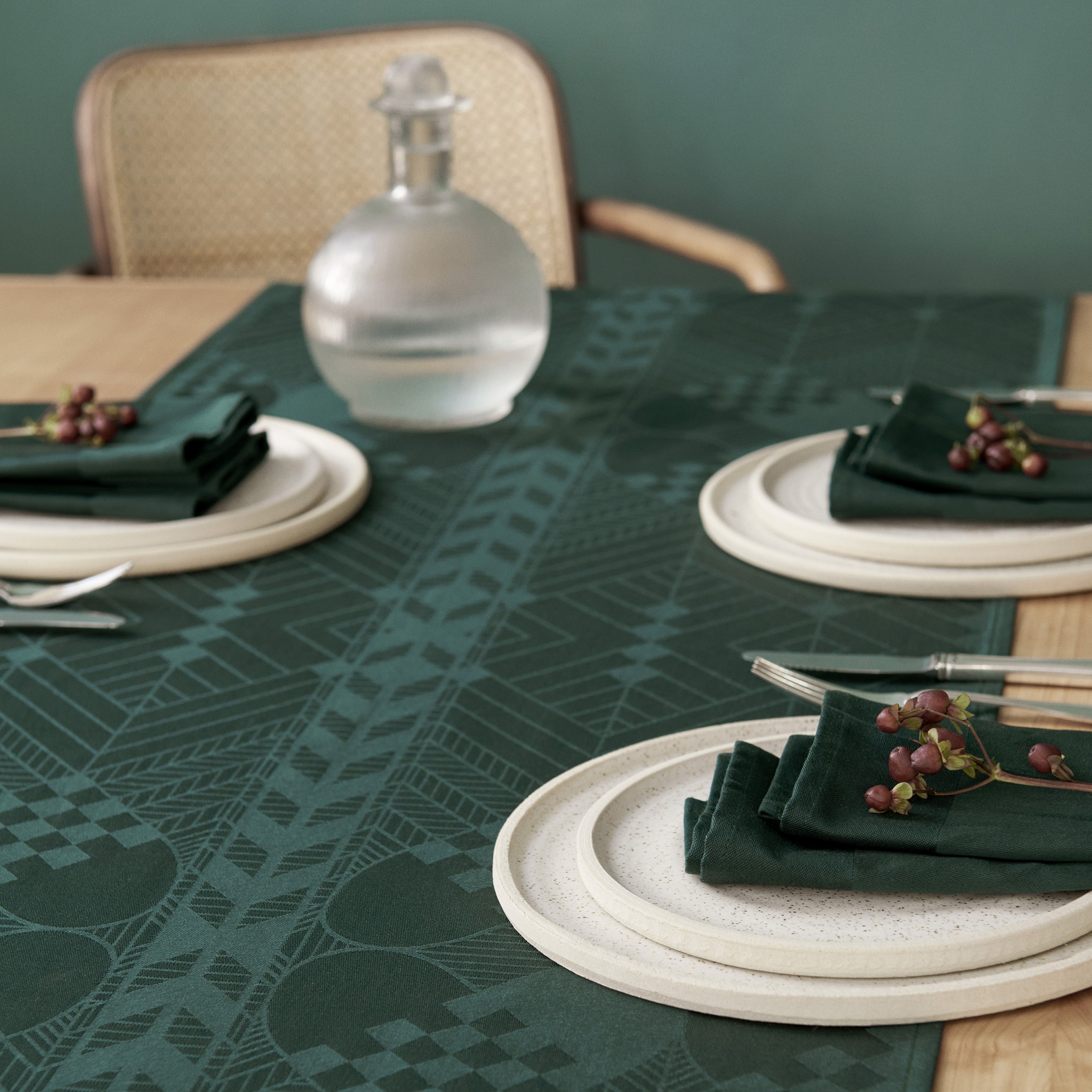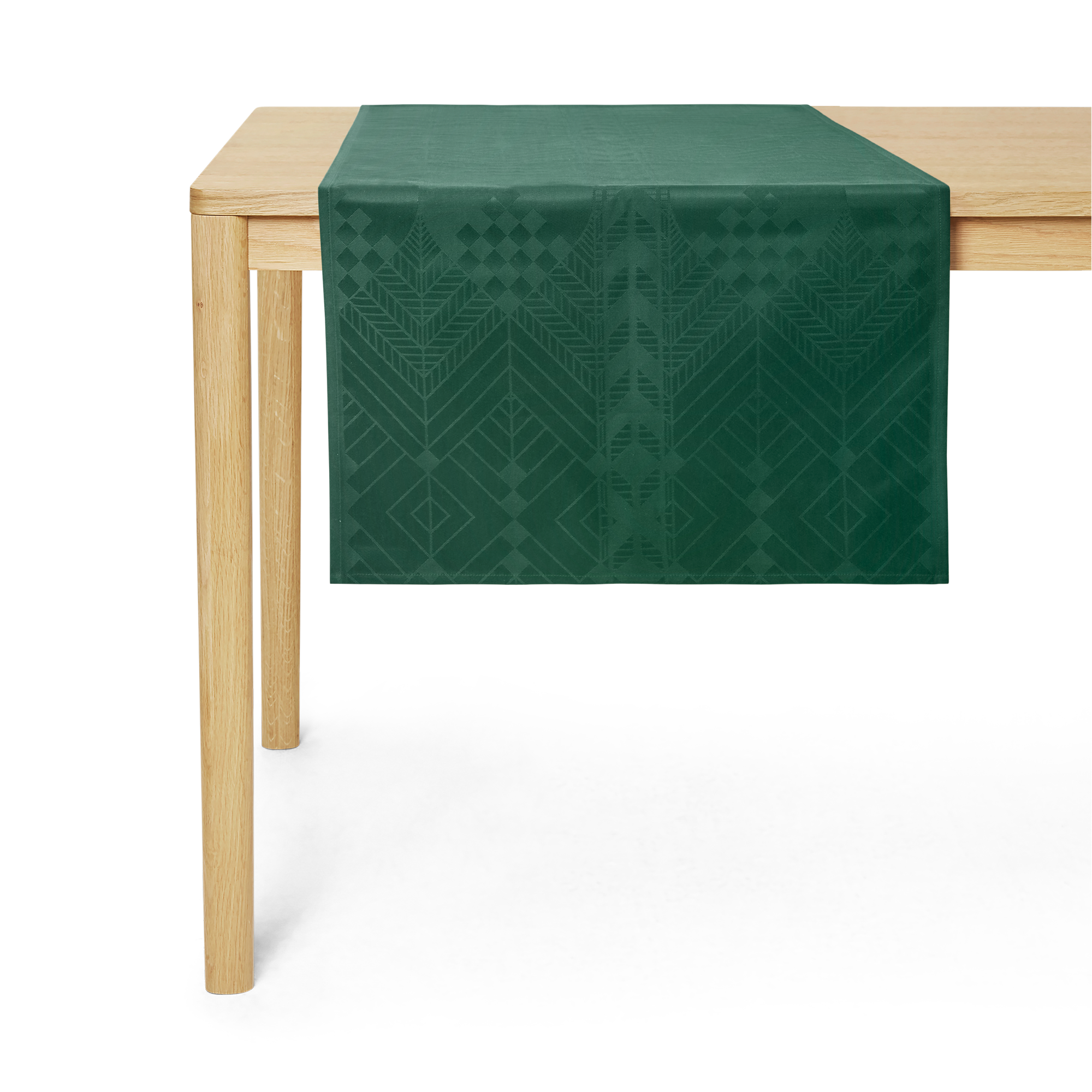In de donkergroene kleur Copenhagen krijgt loper een bijzonder sfeervolle uitdrukking. De kleur is geïnspireerd op de groene tint van de poorten en banken van Kopenhagen en creëert op de kersttafel een look die traditioneel en modern kerstfeest samenbrengt.