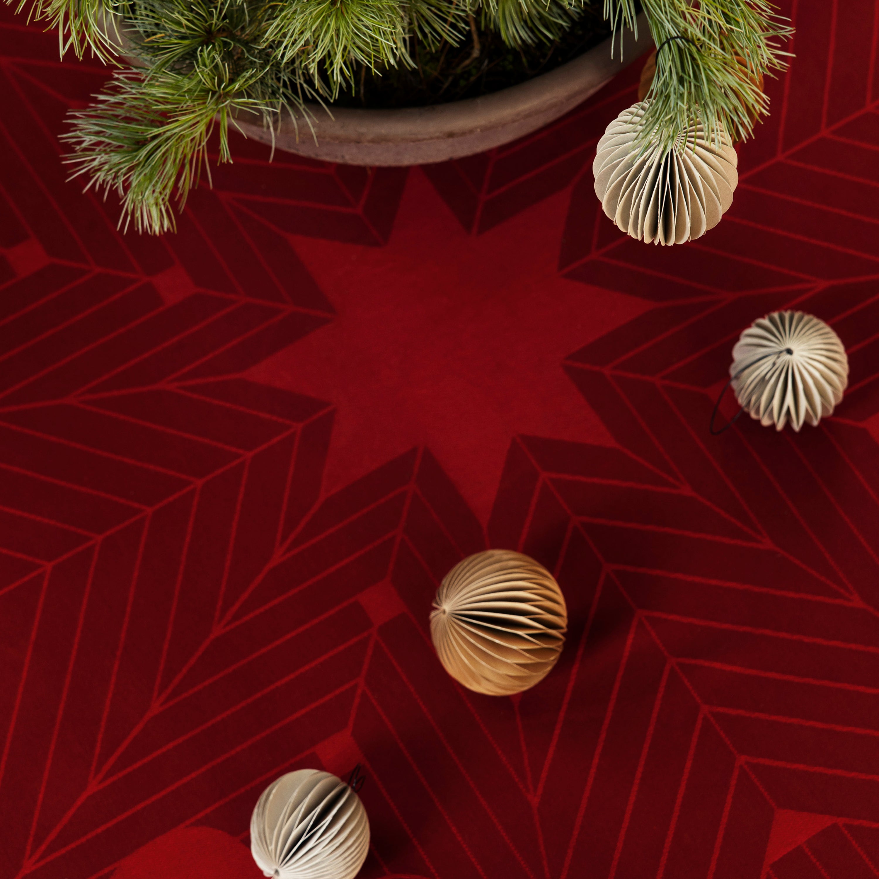 De donkerrode variant is geweven in ton-sur-ton tinten van de iconische kerstkleur, waardoor de kerstboomdeken een eenvoudige, klassieke en stijlvolle uitstraling heeft die jarenlang vreugde zal brengen. Generatie na generatie.