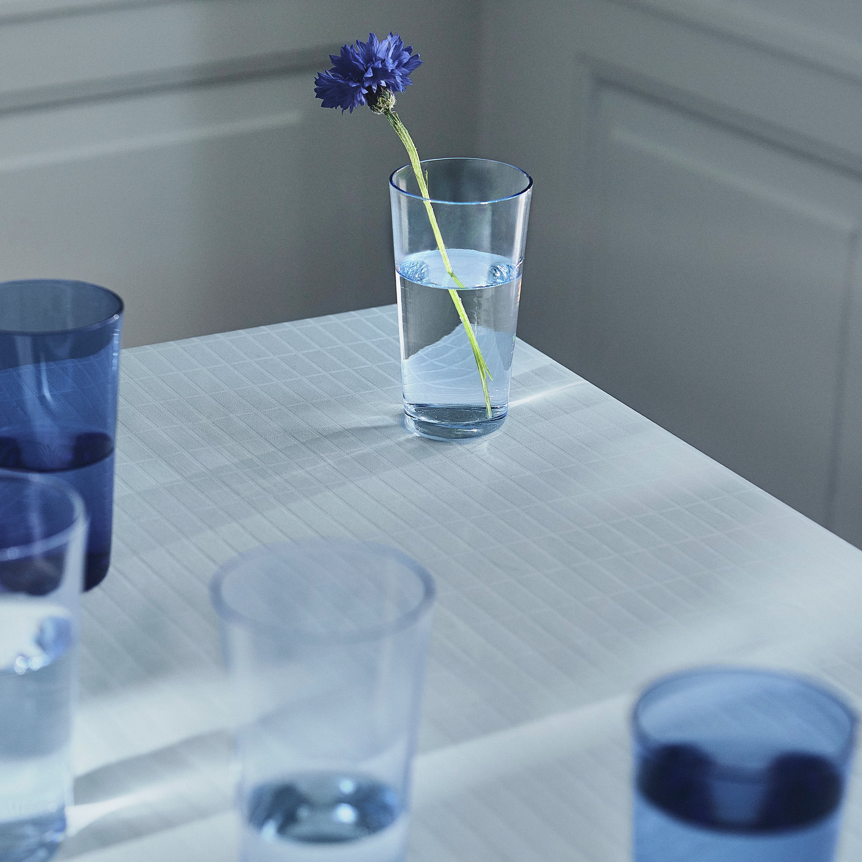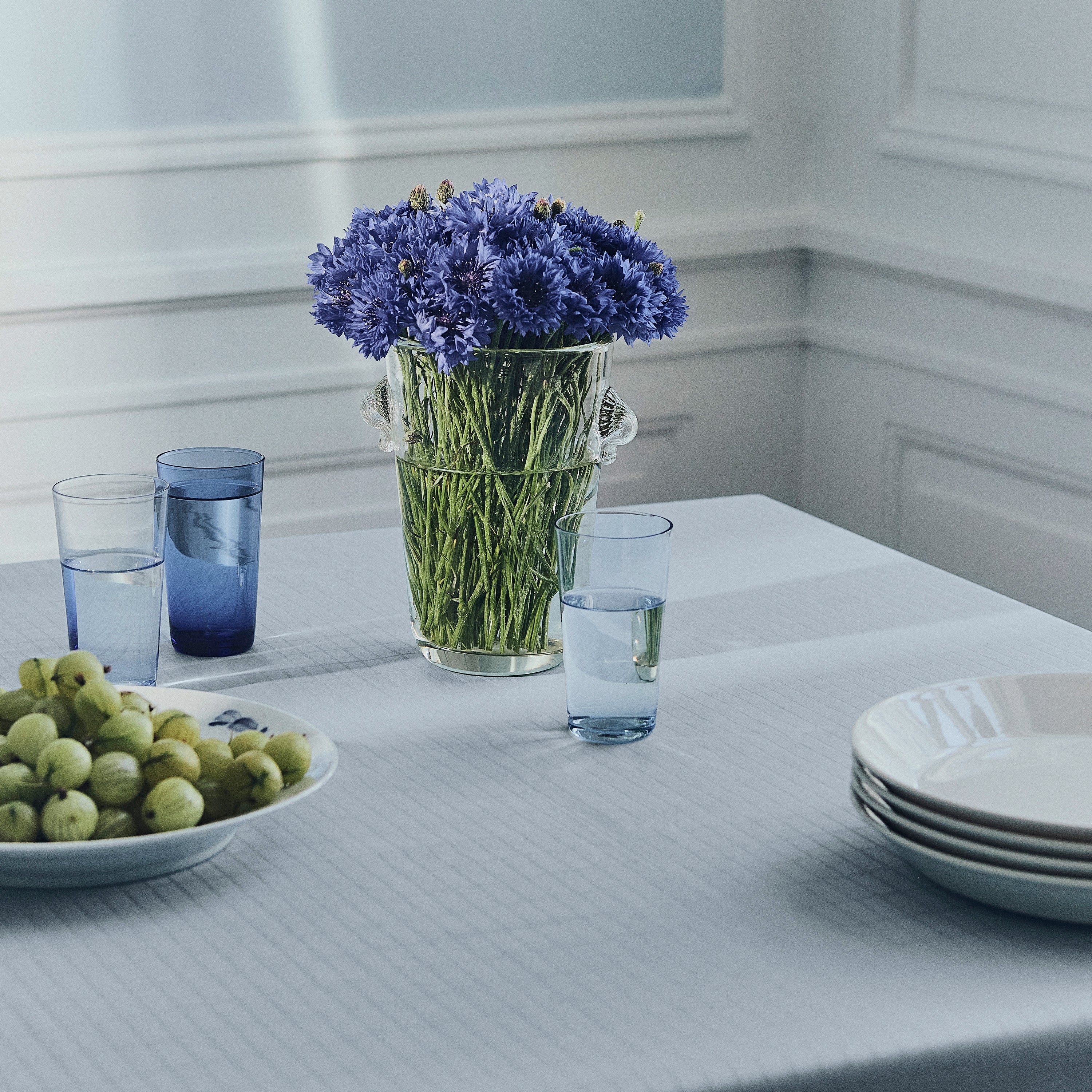 Classic Lines er en satinvævet dug i 100 % bomuld med coated overflade, der gør den vand- og smudsafvisende. Dugen har et enkelt udtryk med rene linjer, der skaber et elegant mønster med rektangulære tern på bordoverfladen. Blue Haze er en lys og støvet nuance af blå.