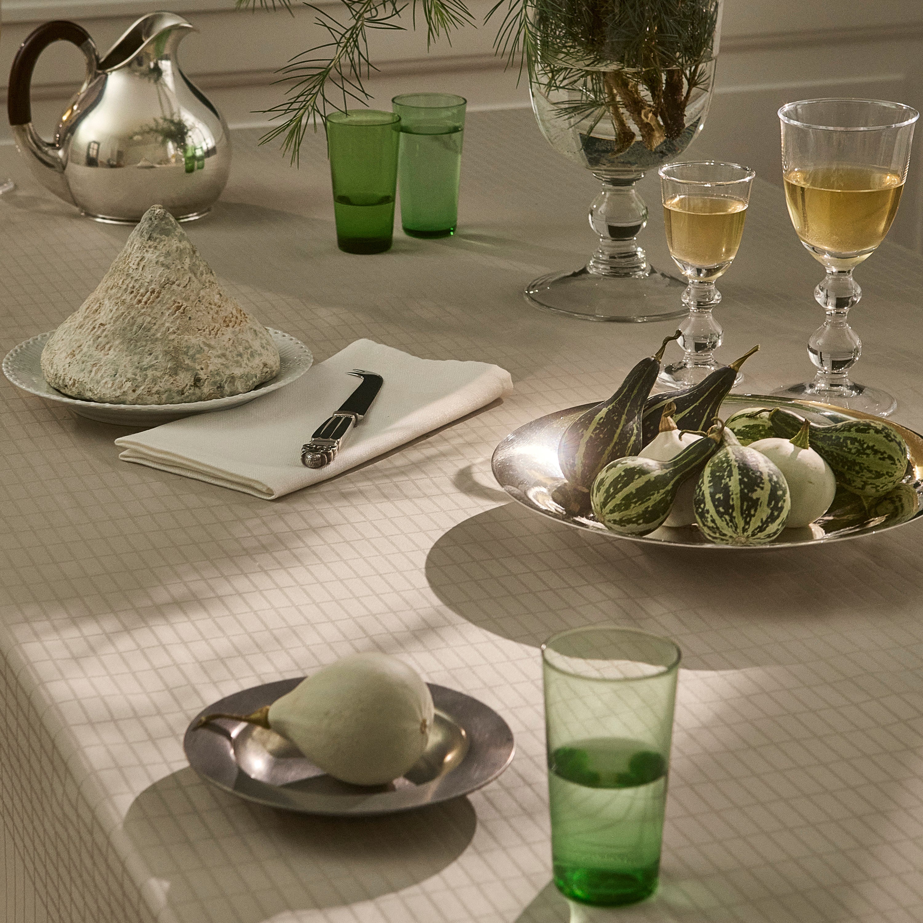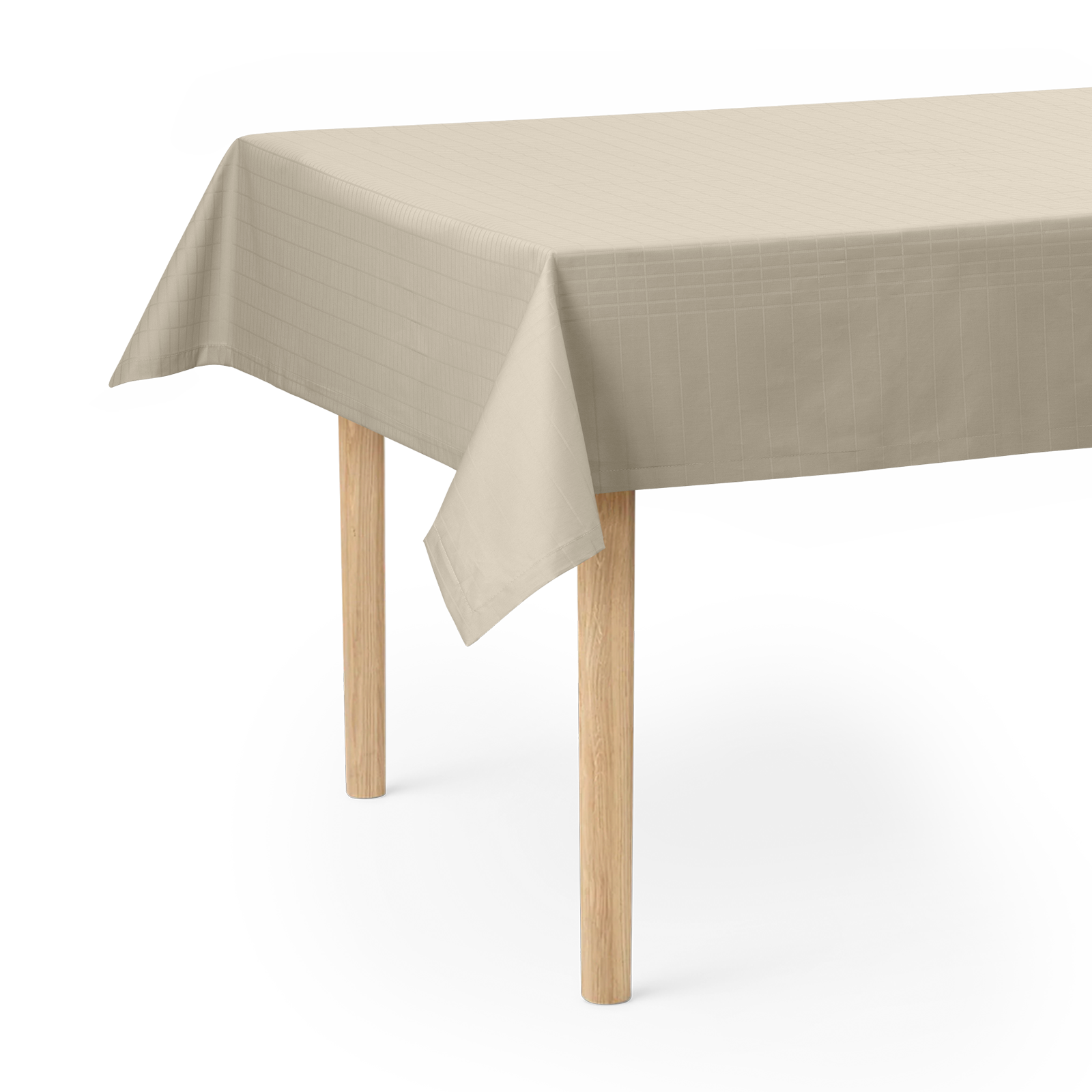 Classic Lines er en satinvævet dug i 100 % bomuld med coated overflade, der gør den vand- og smudsafvisende. Dugen har et enkelt udtryk med rene linjer på tværs, der skaber et elegant mønster med rektangulære tern på bordoverfladen. Silver Sand er en varm gråtone.