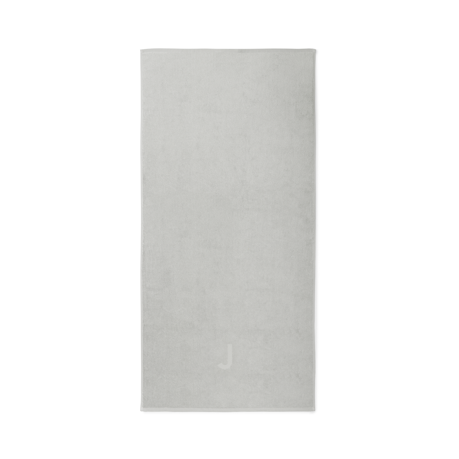 Damask Terry badehåndklæde med indvævet J bogstav. Badehåndklædet er jacquardvævet i 100 % dobbelttvundet, kæmmet bomuld med bogstav i relief. Det er både blødt, glansfuldt og slidstærkt. Den elegante farve, Platinum Grey, er en let og kølig nuance af grå.