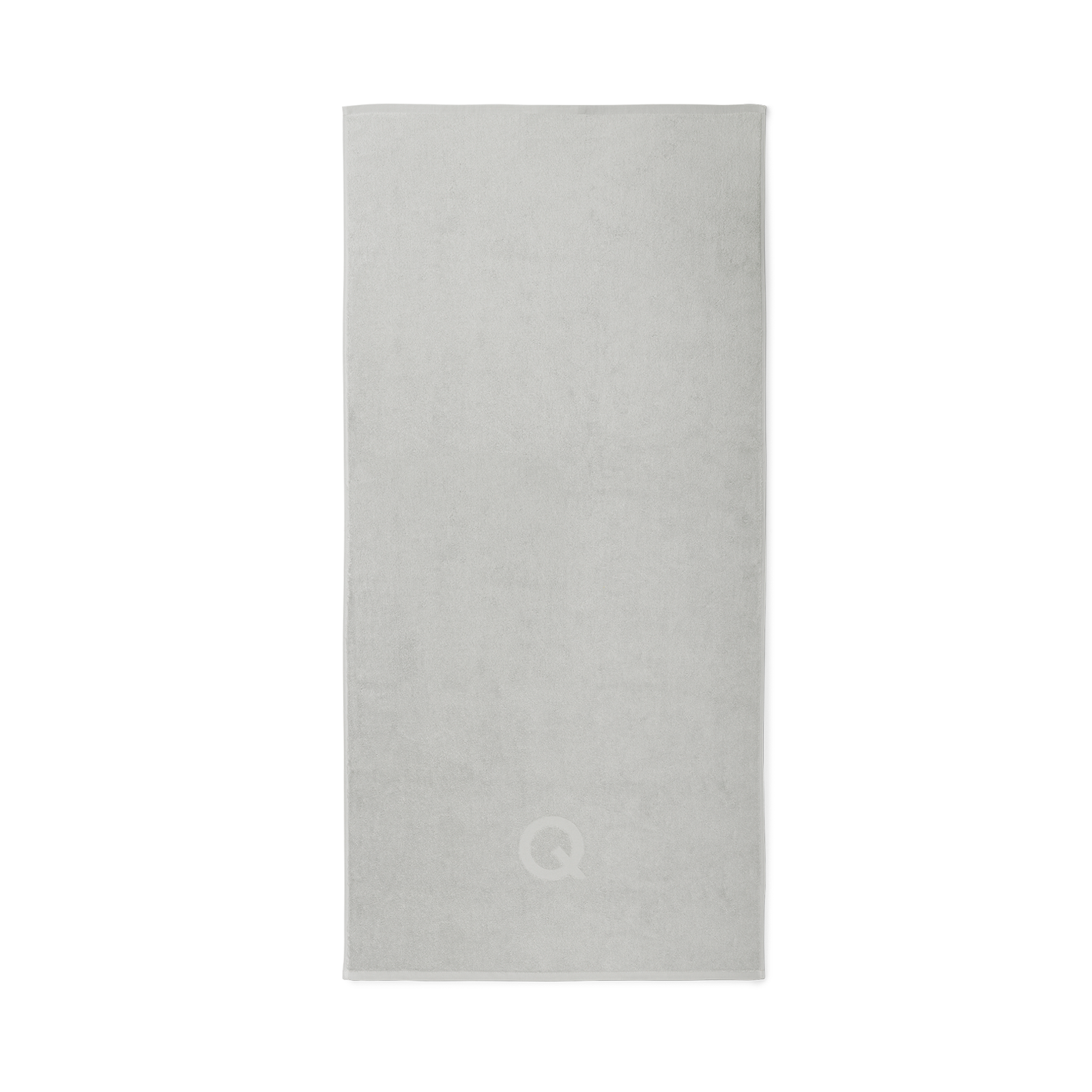 Damask Terry badehåndklæde med indvævet Q bogstav. Badehåndklædet er jacquardvævet i 100 % dobbelttvundet, kæmmet bomuld med bogstav i relief. Det er både blødt, glansfuldt og slidstærkt. Den elegante farve, Platinum Grey, er en let og kølig nuance af grå.