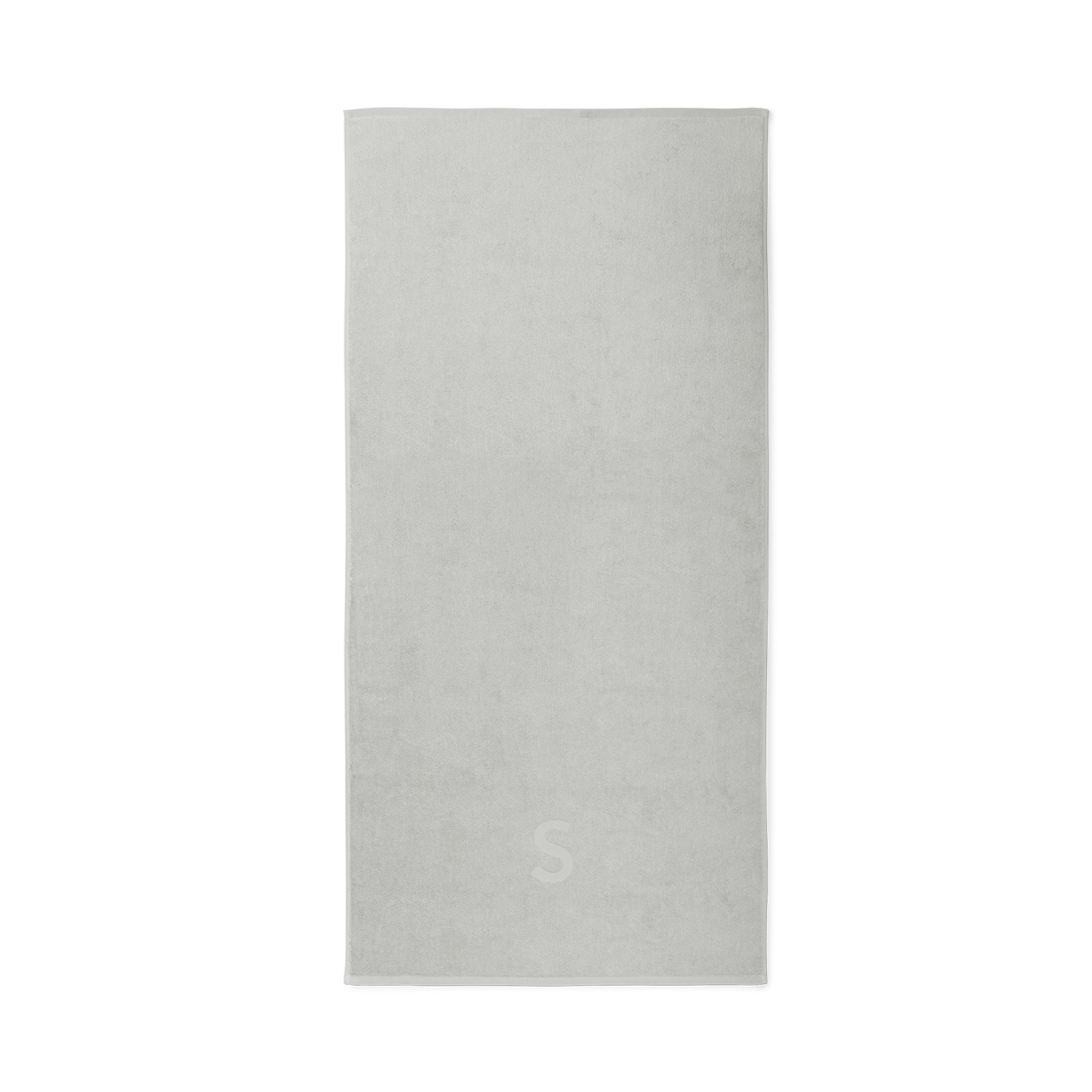 Damask Terry badehåndklæde med indvævet S bogstav. Badehåndklædet er jacquardvævet i 100 % dobbelttvundet, kæmmet bomuld med bogstav i relief. Det er både blødt, glansfuldt og slidstærkt. Den elegante farve, Platinum Grey, er en let og kølig nuance af grå.