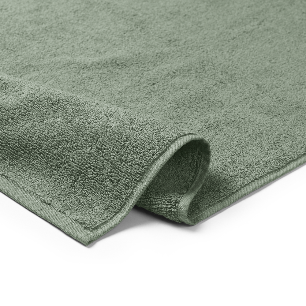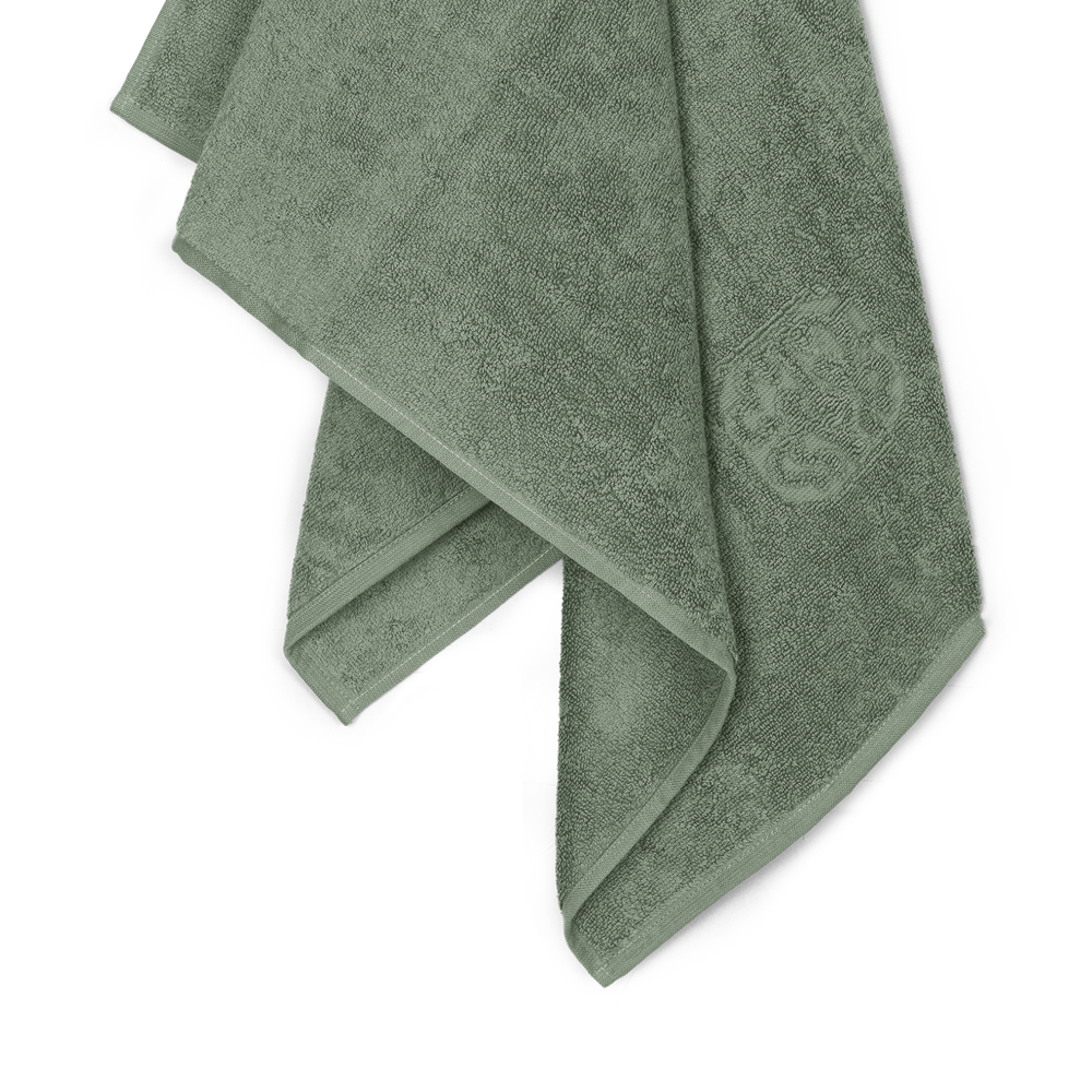 De dikke badhanddoek in de stofgroene kleur Mineral Green voelt zacht en comfortabel aan tegen de huid en wordt alleen maar beter naarmate hij vaker wordt gebruikt. De kleur brengt de natuur in de badkamer
