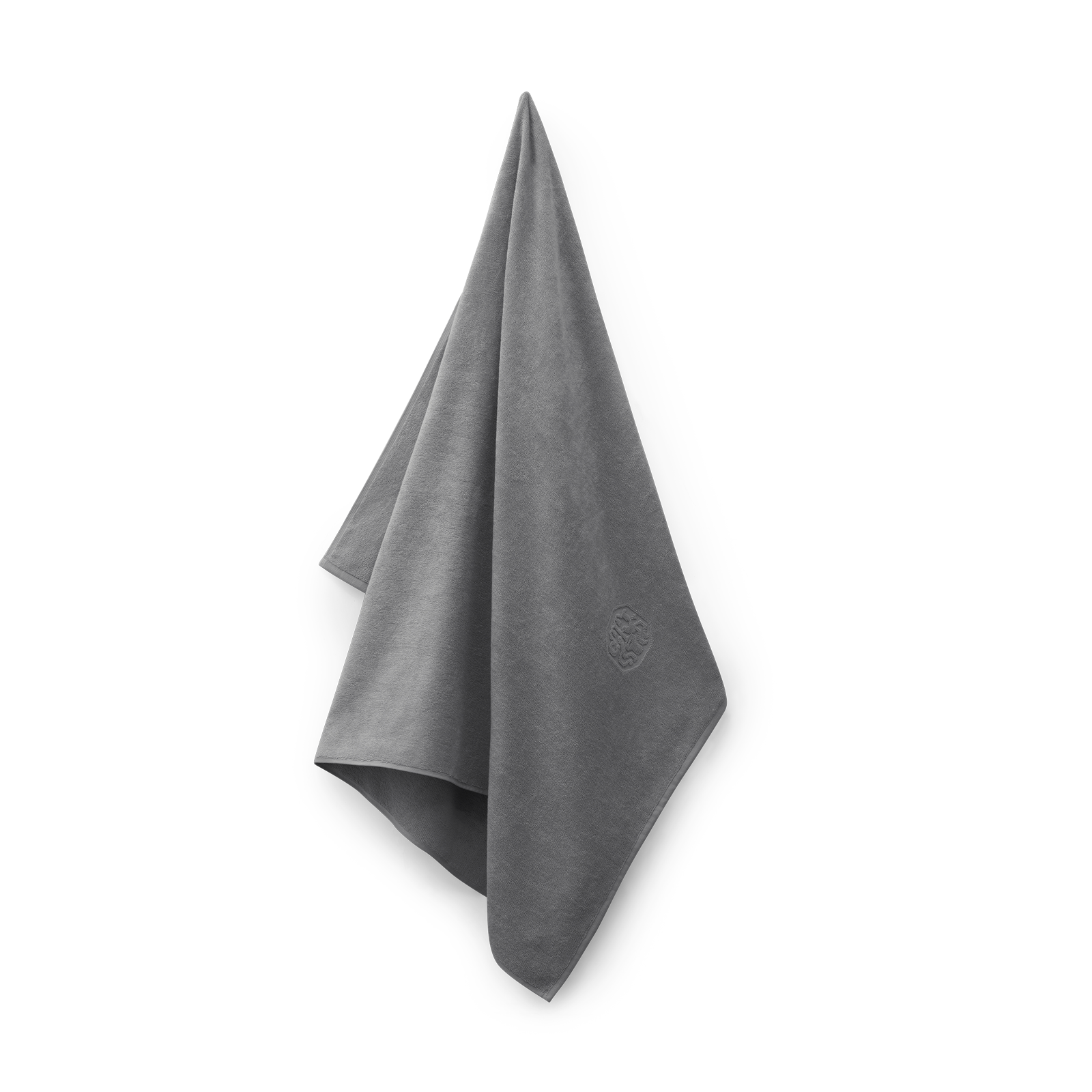 Det store og bløde Damask Terry badelagen har et let og elegant udtryk i den skifergrå farve, Slate. Som enkel detalje har badelagnet Georg Jensen Damasks ikoniske logo indvævet.