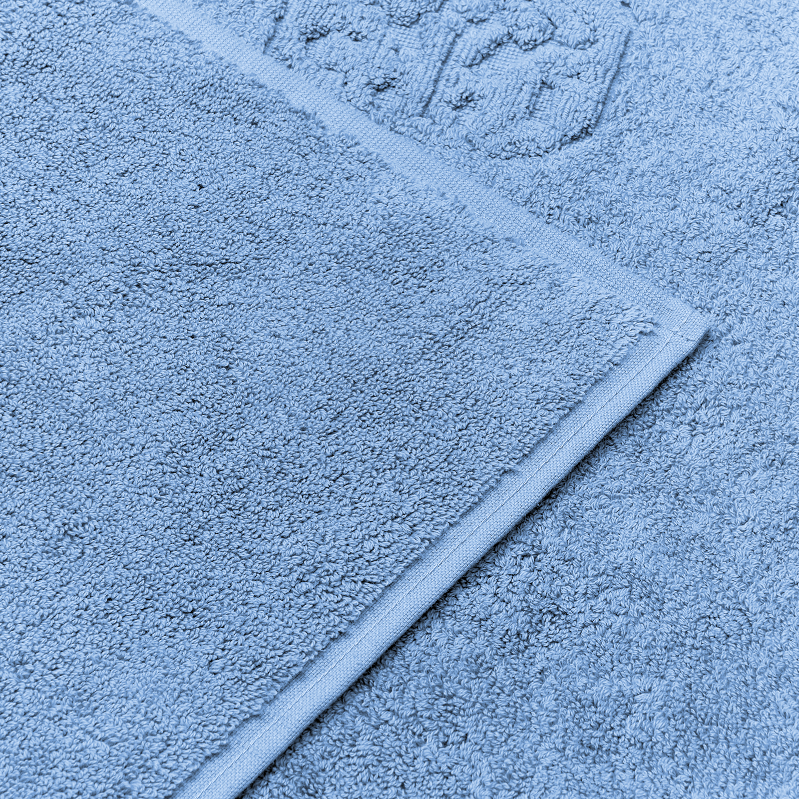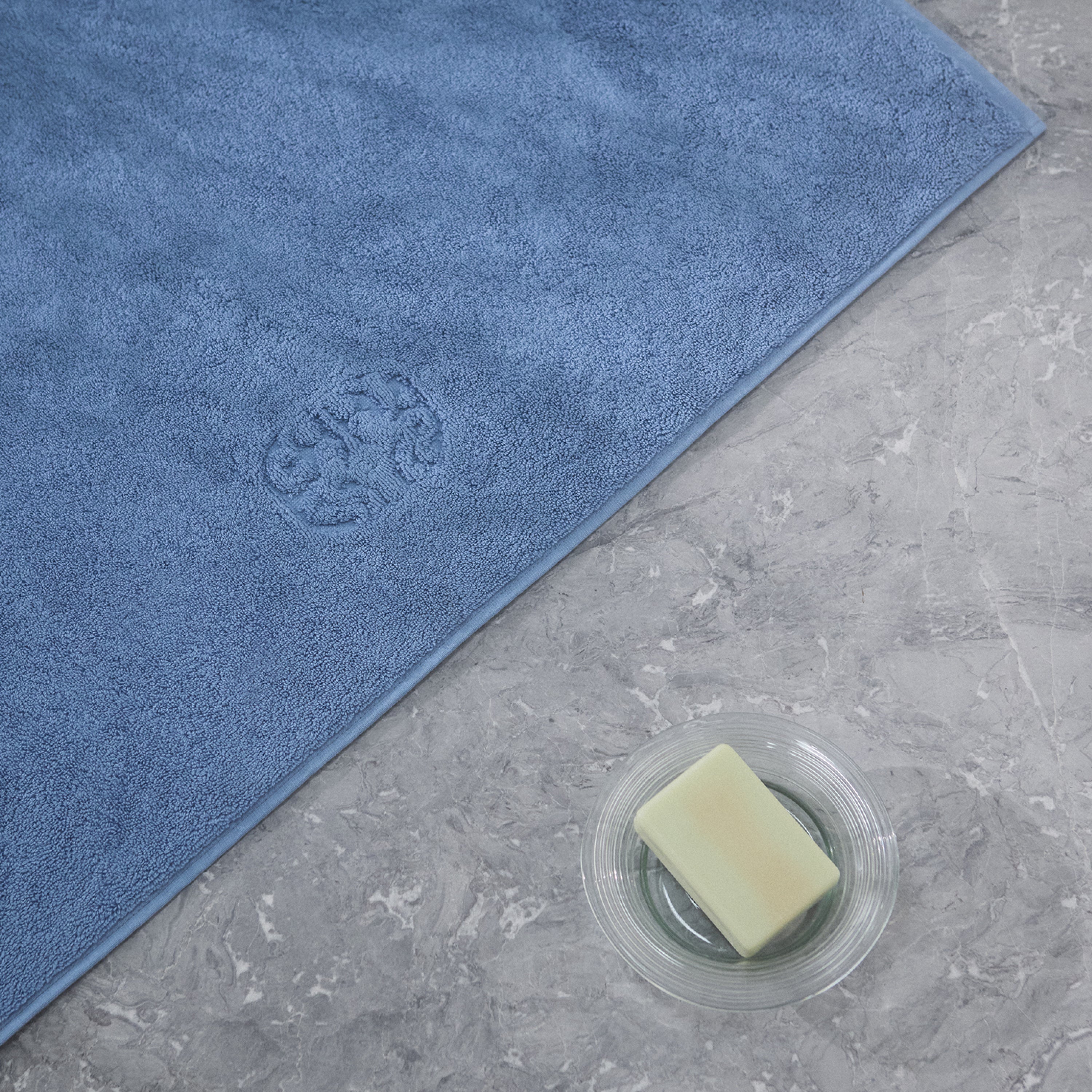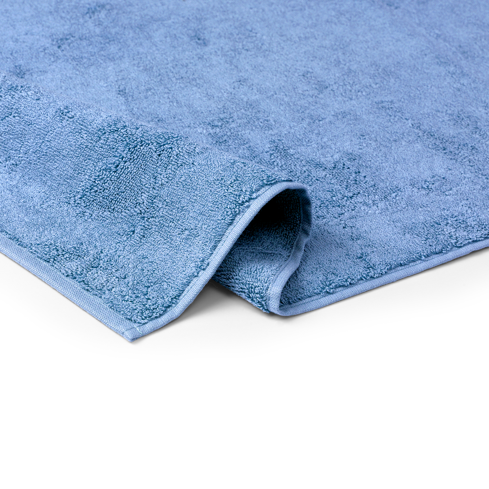 De blauwe Damask Terry badmat is badstof geweven van 100% dubbel getwijnd gekamd katoen. De dikke mat voelt zacht en comfortabel aan onder je voeten en is gezellig in de meeste badkamers. De kleur Bright Blue is een heldere kleur blauw.