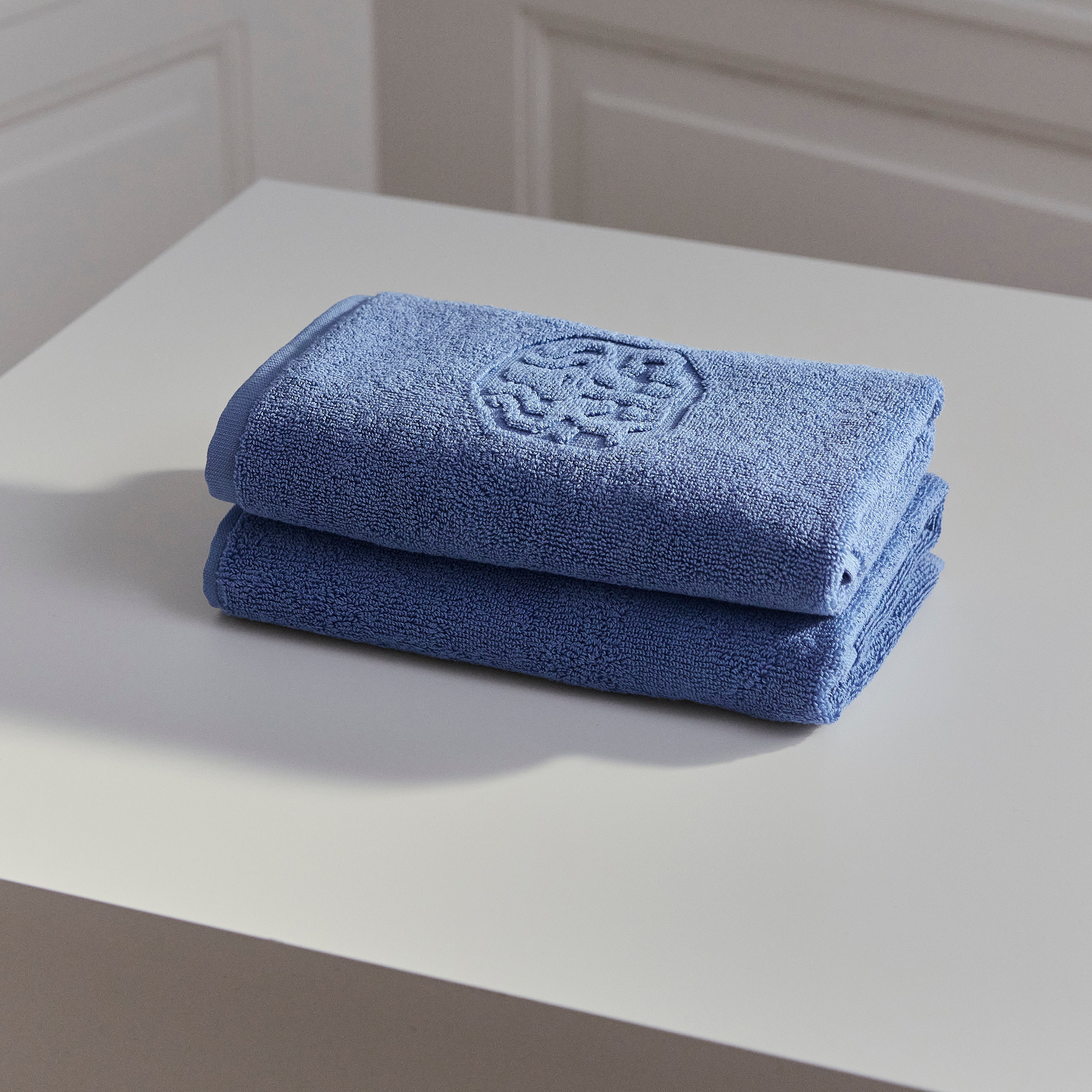 Een zachte handdoek voor je gasten. Het Damask Terry gastendoekje is badstof geweven van 100% dubbel getwist gekamd katoen. De kleur Bright Blue is een helderblauwe kleur die terugkomt in het Damask Terry assortiment.