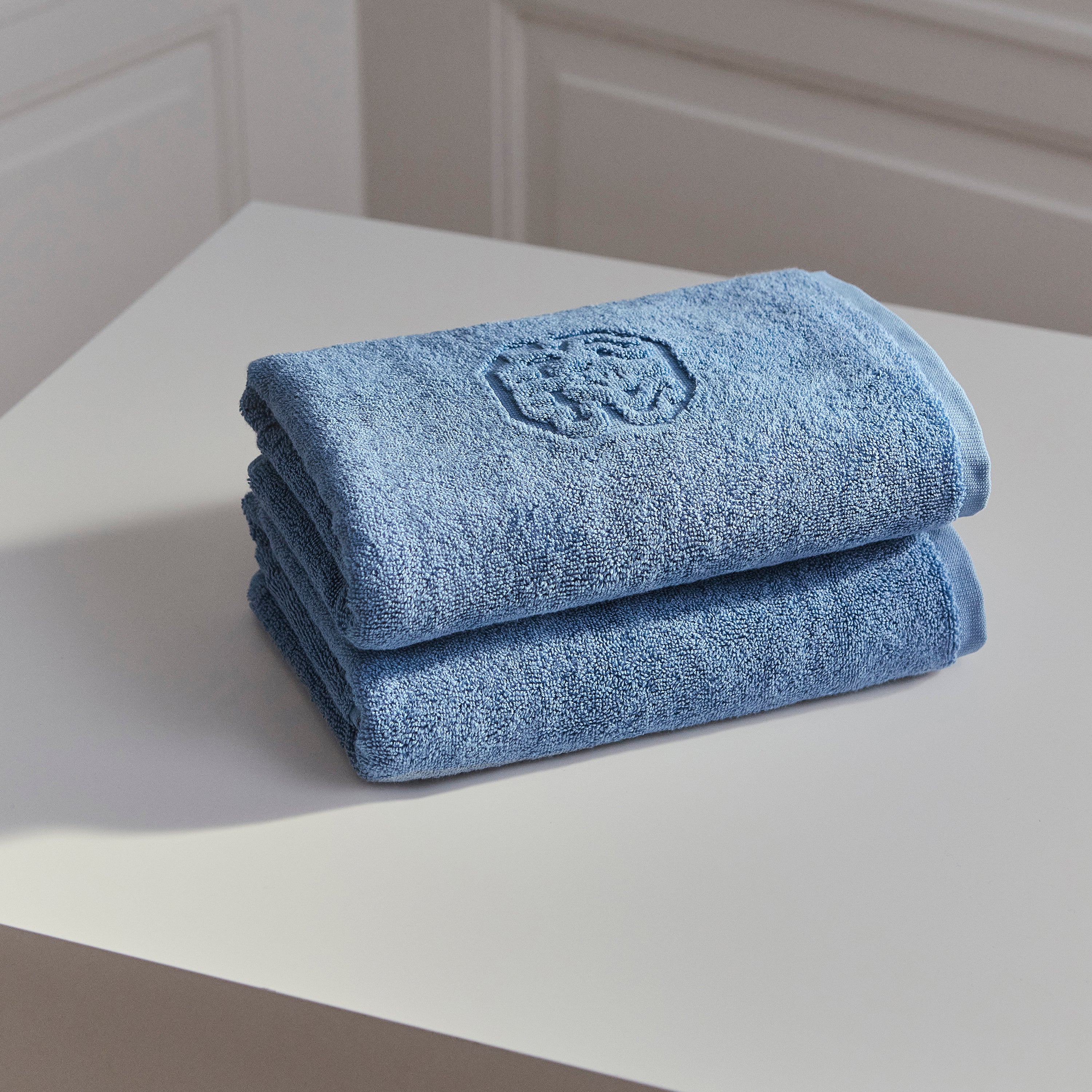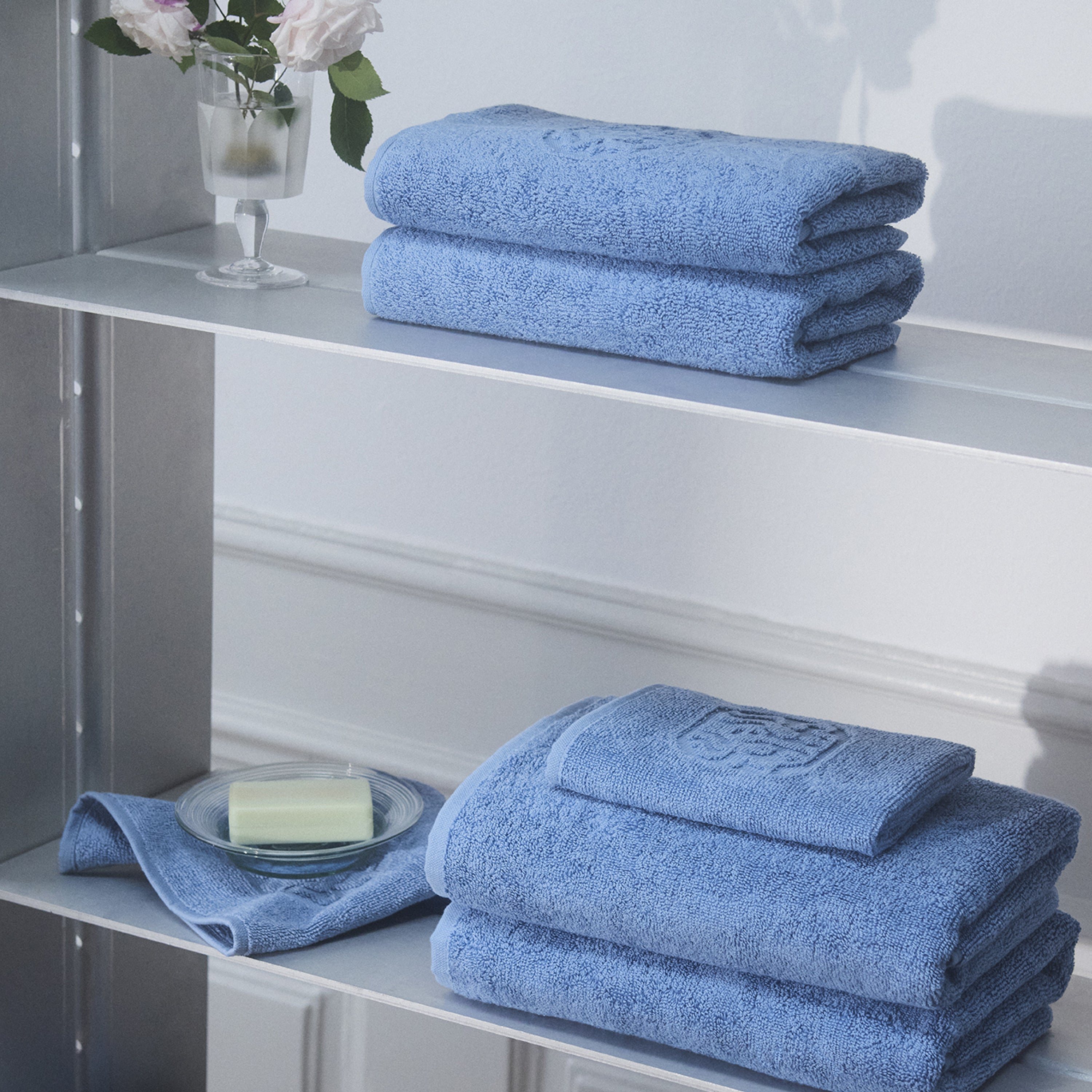 De klassieke Damask Terry handdoek is badstof geweven van 100% dubbel getwist gekamd katoen. De zachte handdoek voelt comfortabel aan tegen de huid en wordt alleen maar beter naarmate je hem vaker gebruikt. De kleur Bright Blue is een helderblauwe tint die terugkomt in het Damask Terry assortiment.