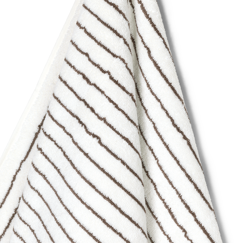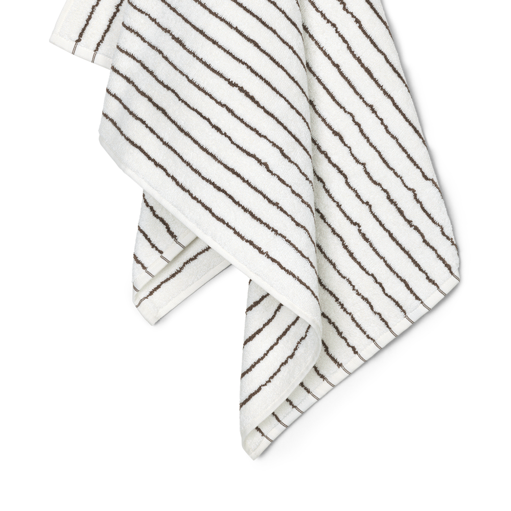 De smalle donkerbruine en witte strepen geven de badhanddoek een moderne look die leven brengt in de badkamer. Combineer hem eventueel met effen handdoeken. Onze badstof wordt steeds beter naarmate je het vaker gebruikt.