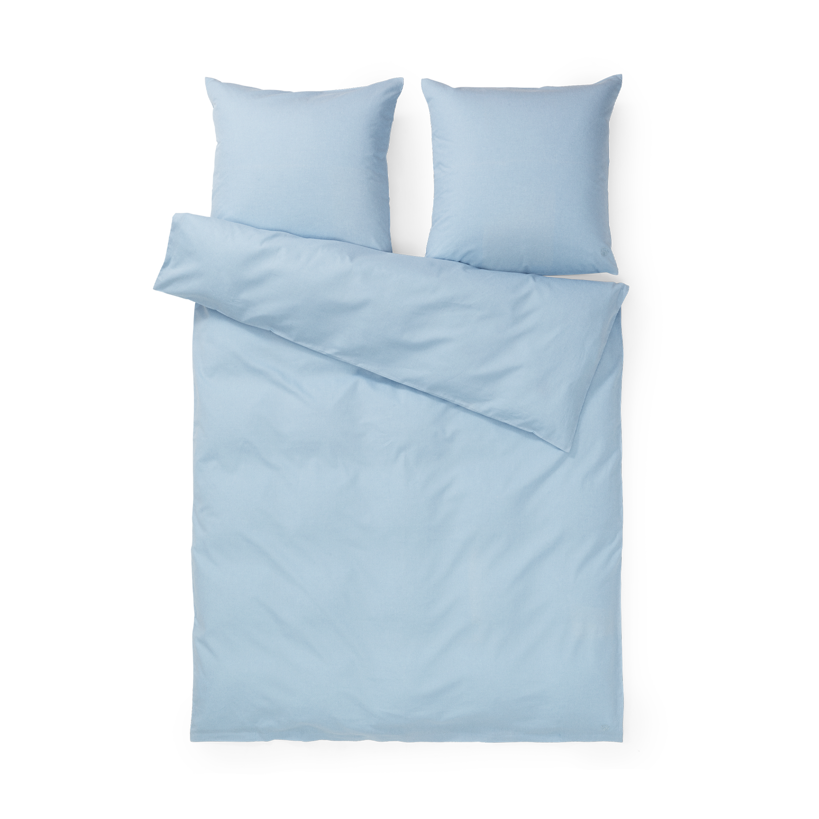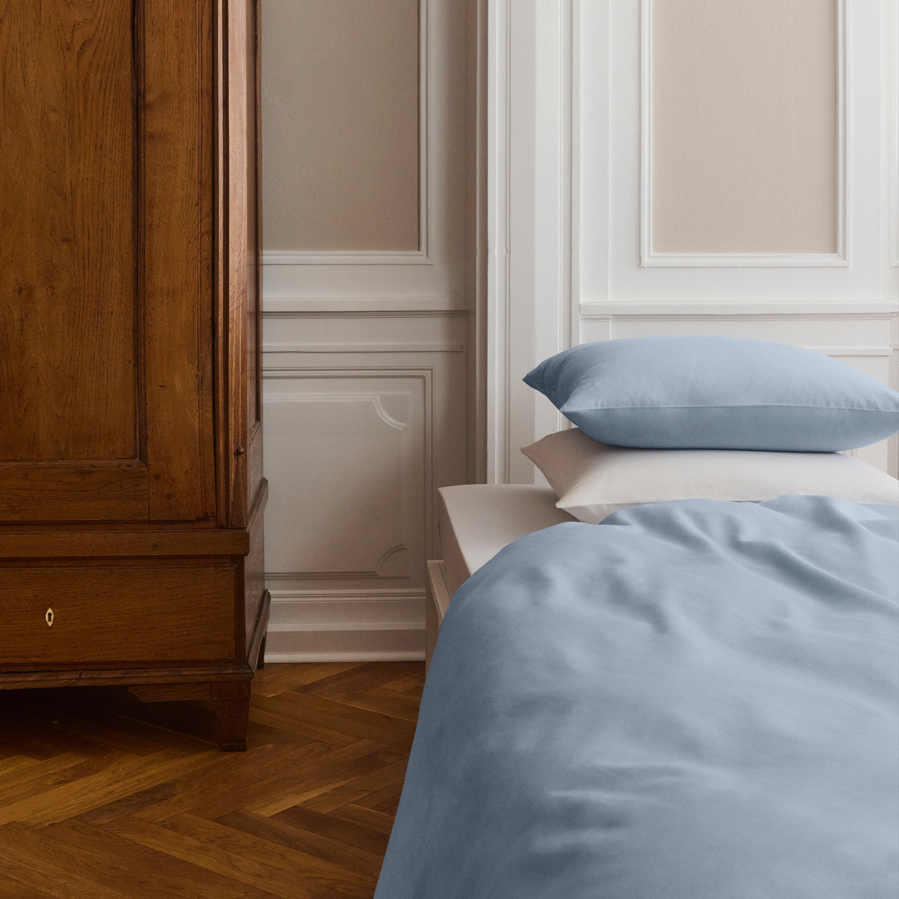 Het Even-beddengoed is linnenbinding geweven van linnen en katoen om de bijzondere eigenschappen van beide materialen te combineren. De natuurlijke textuur van linnen gecombineerd met de zachtheid en vormvastheid van katoen. Samen geeft dit een mooi, mat en zacht oppervlak – en ademend en duurzaam beddengoed. De kleur Blue Haze is een lichte, vergrijsde tint blauw.