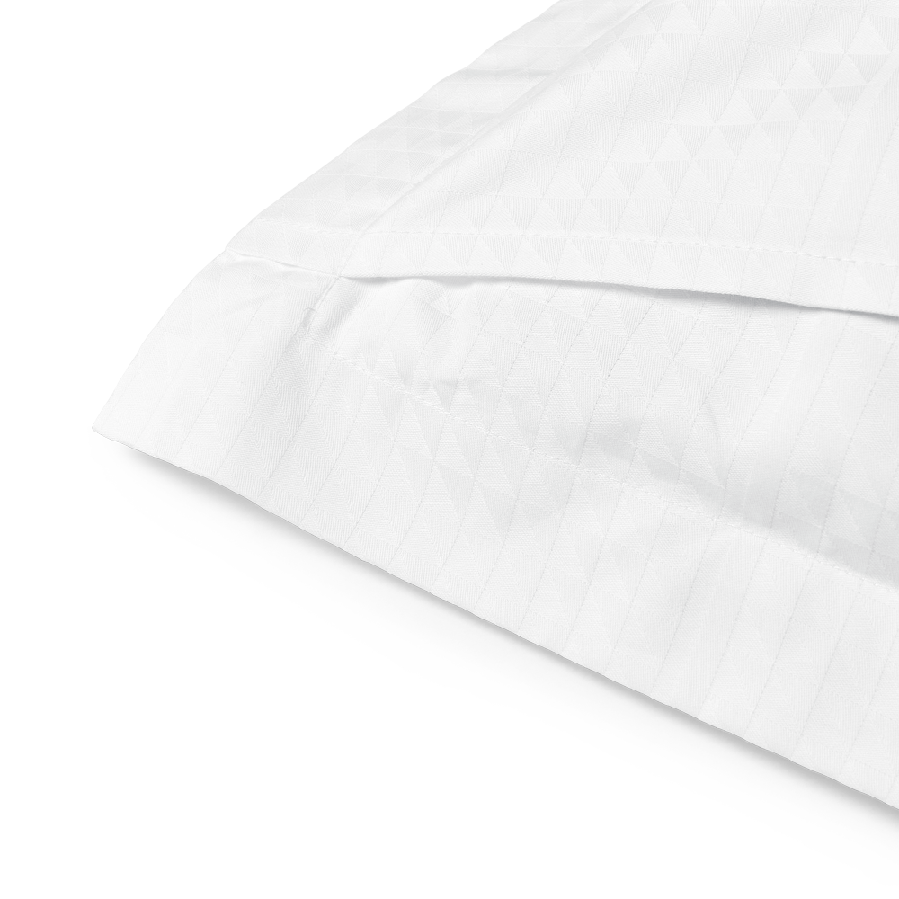 Als een studie in wit roept de kussensloop geen specifieke interieurstijl op, maar brengt het puurheid, elegantie en ingetogen schoonheid in de slaapkamer.