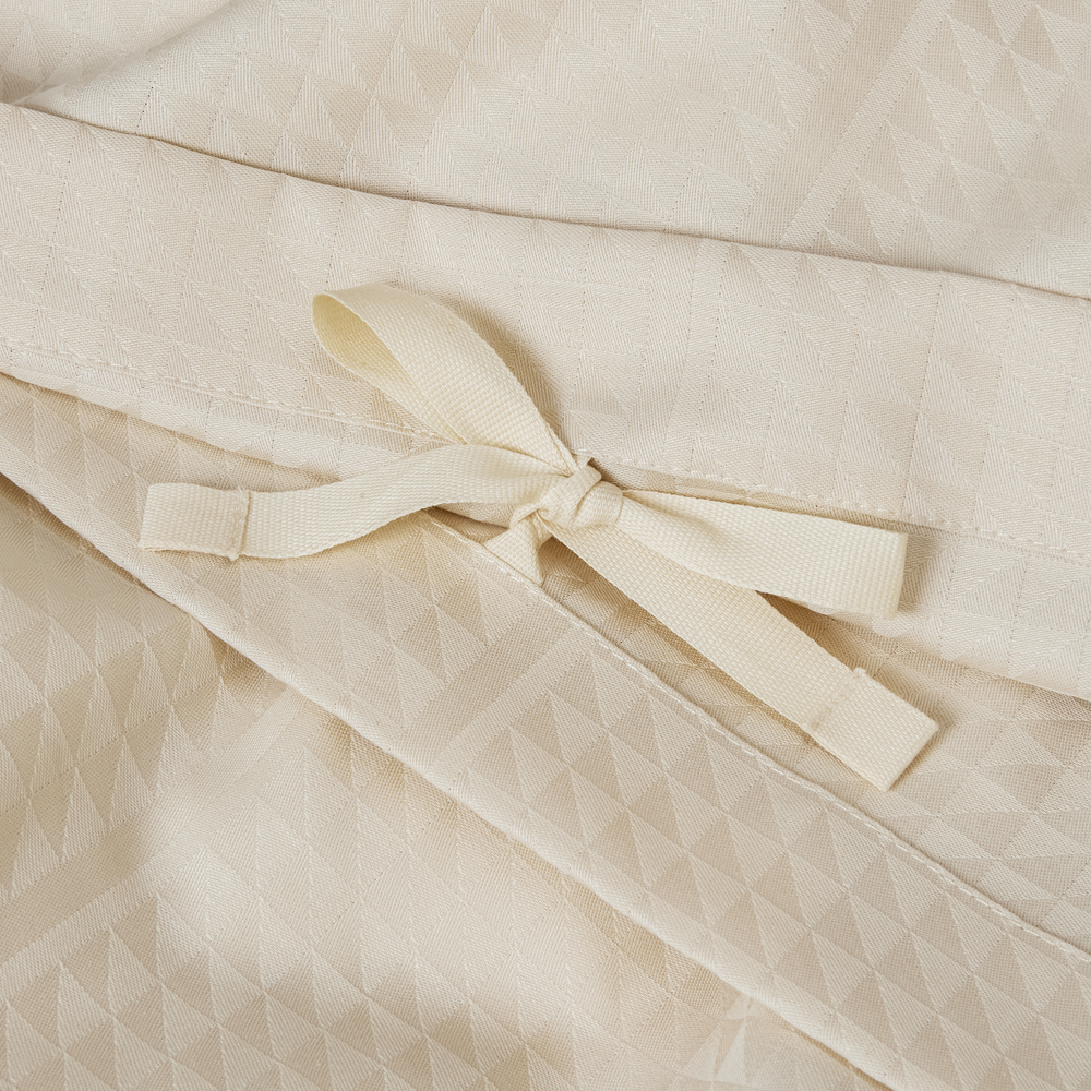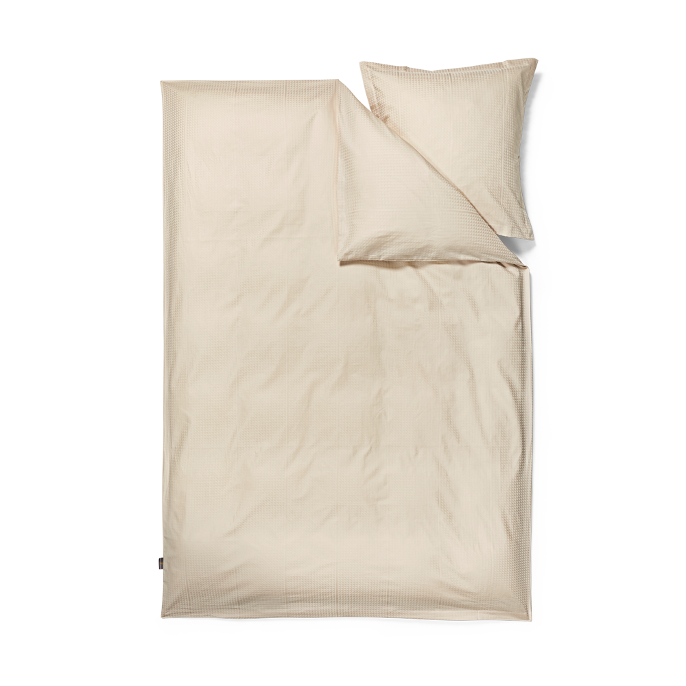 Het Facet bedlinnen van Georg Jensen Damask heeft een strak design en is damast geweven in 100% gekamd katoen voor een zacht en glad oppervlak. Met het Facet-design gebruikt textielkunstenaar Jette Nevers het klassieke damastweefsel om een elegant schaduwspel te creëren dat prachtig tot zijn recht komt in het lichtbeige kleurenarchief.