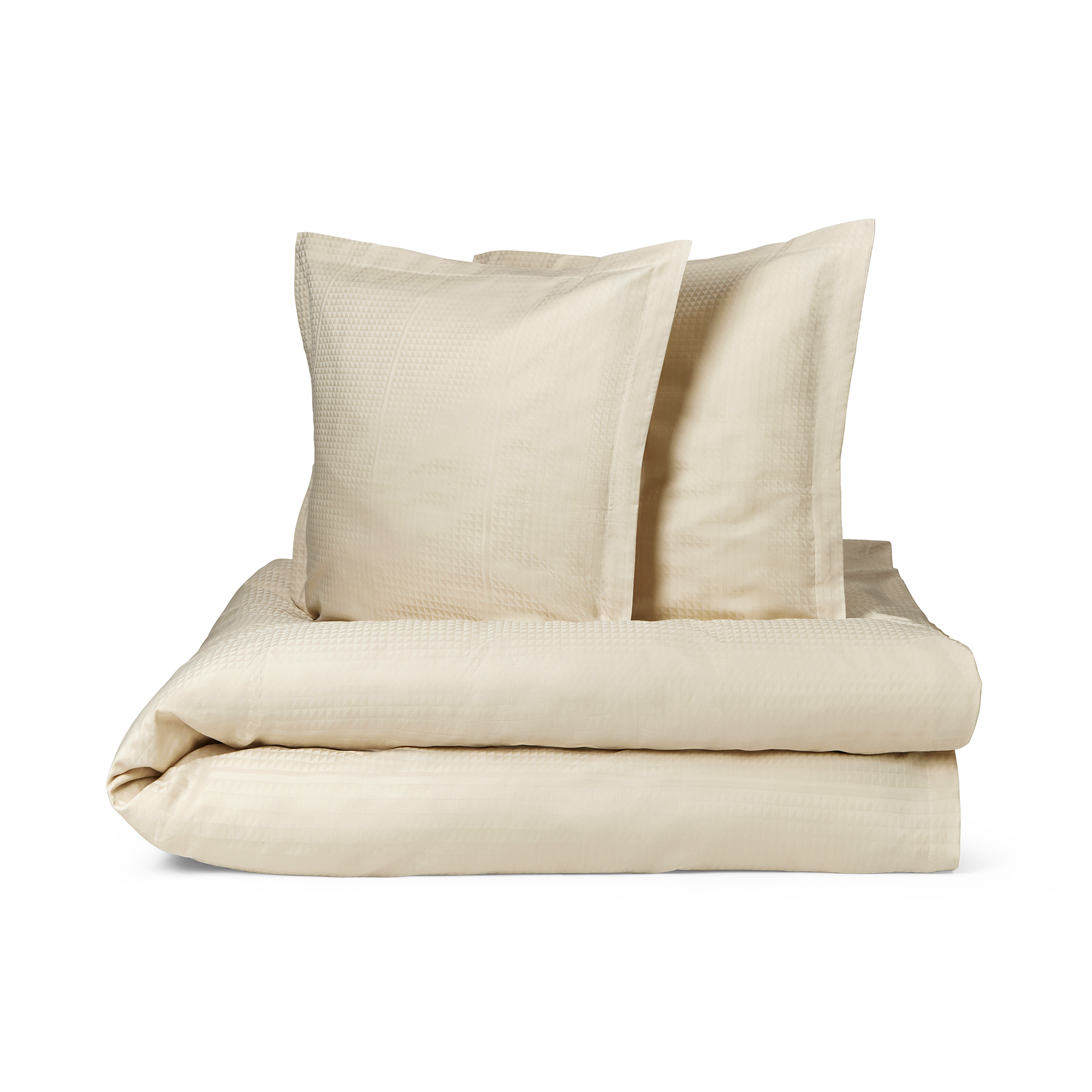 Klassiek damasten tweepersoons dekbedovertrek met een facetpatroon in eenvoudige geometrische vormen dat rust en harmonie creëert in de slaapkamer. Het bedlinnen is geweven in 100% gekamd katoen.