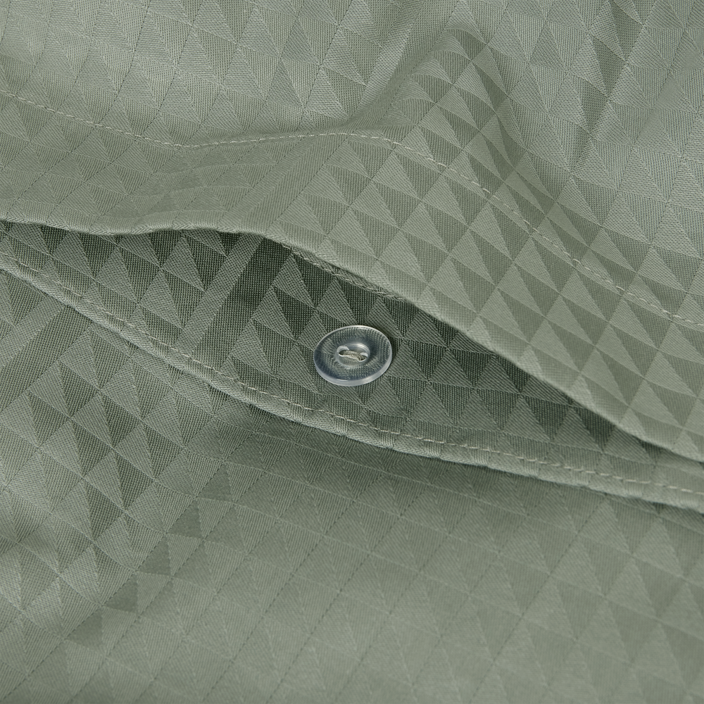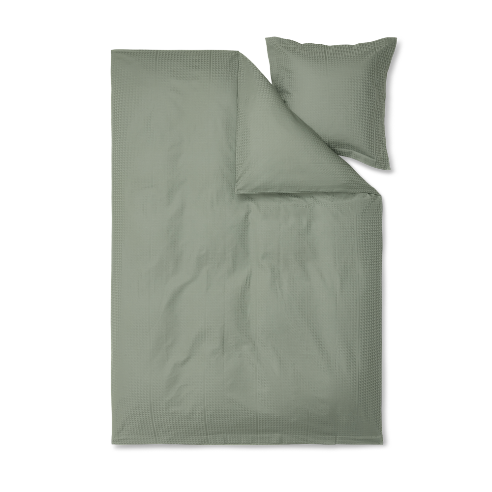 Het Facet bedlinnen van Georg Jensen Damask voor de jongste leden van de familie heeft een strak design en is damast geweven in 100% gekamd katoen voor een zacht en glad oppervlak. Met het Facet-design gebruikt textielkunstenaar Jette Nevers het klassieke damastweefsel om een elegant schaduwspel te creëren dat prachtig tot zijn recht komt in de donkergroene kleur Mineral Green.