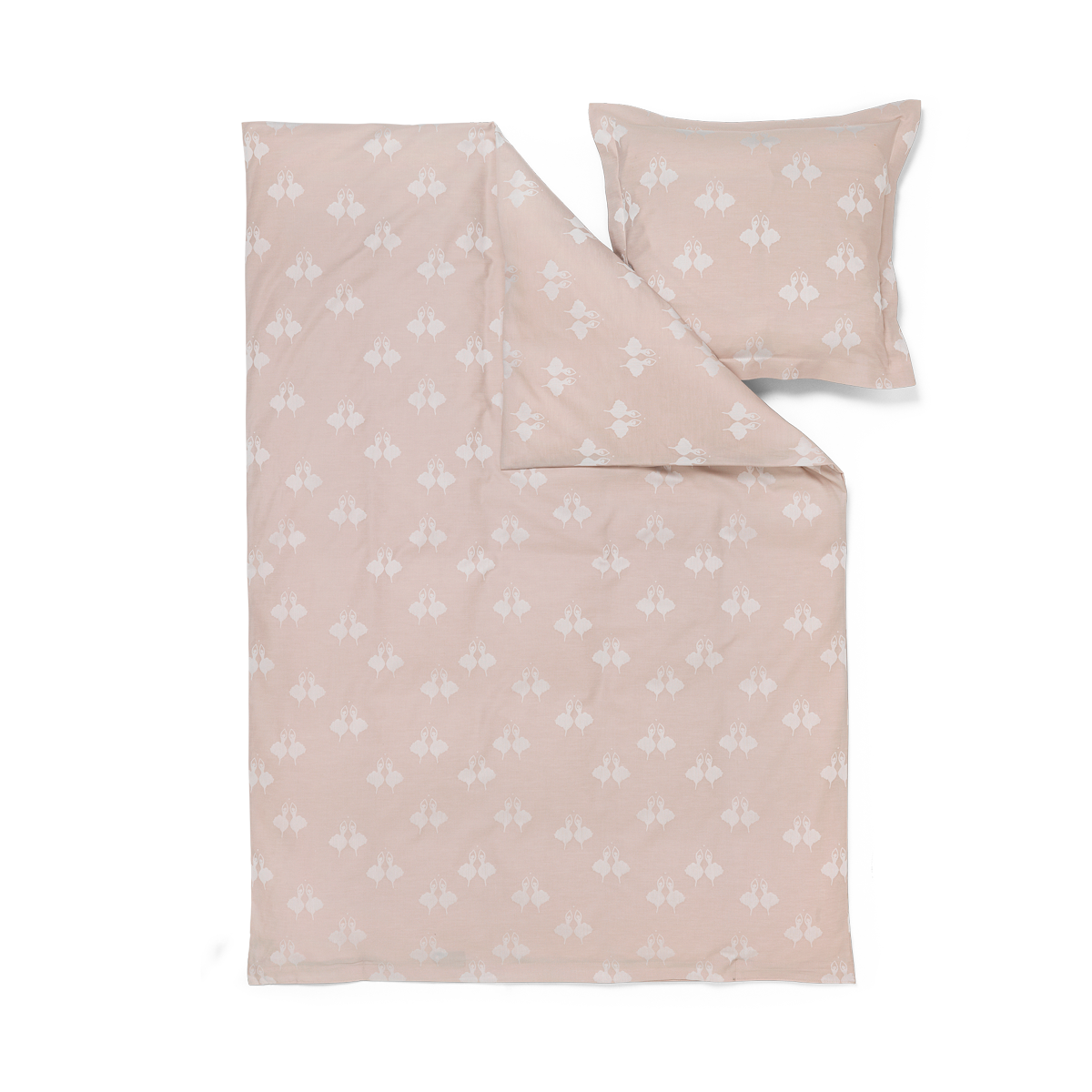 In een delicate roze pastelkleur stuurt het beddengoed kleine en oudere meisjes naar dromenland, gewikkeld in de fijnste zachte kwaliteit en een poëtisch ontwerp. Een baby- en juniorlaken van Georg Jensen Damask in een stevige canvasbinding maakt de look compleet.