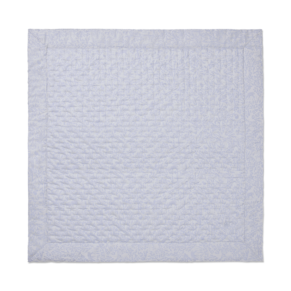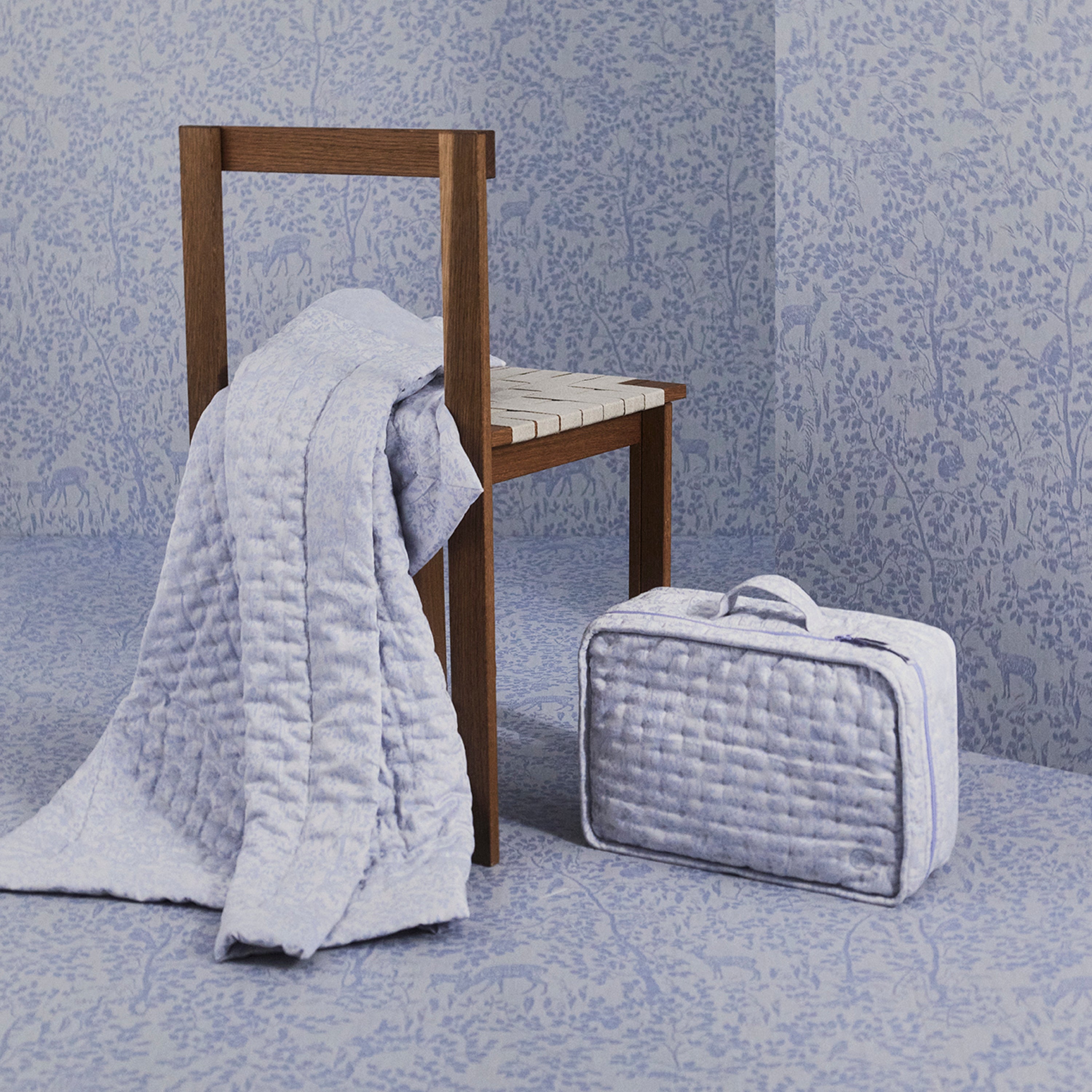 De Forest collectie heeft een doorgestikte deken in de kleur Clear Blue, waarbij een patroon van jonge boompjes, herten en konijnen in de stof is geweven met behulp van een klassieke damasttechniek. De deken is gemaakt van biologisch katoen.