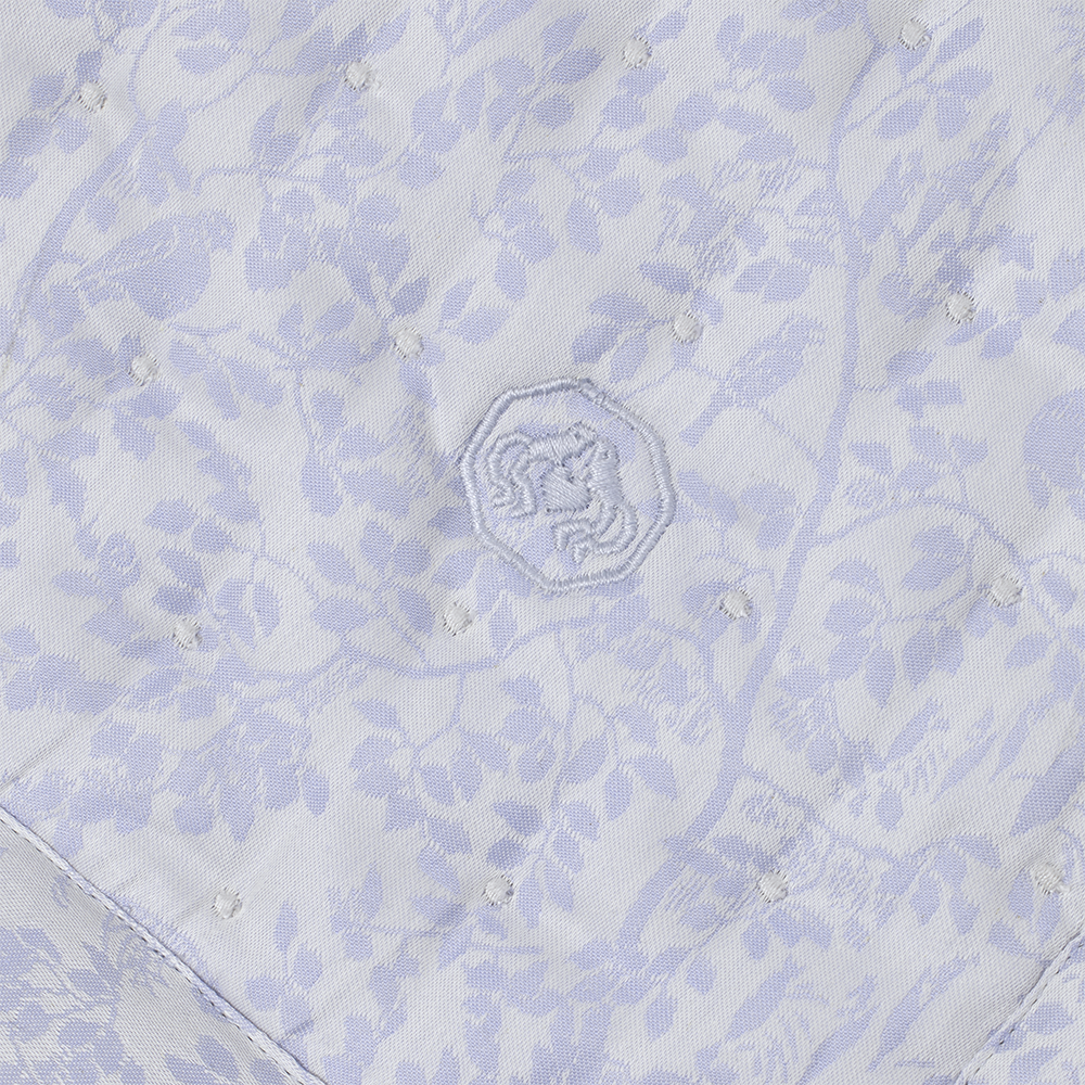 Alle producten zijn geborduurd met een klein Georg Jensen Damask kinderlogo. Clear Blue is een lichte, licht stoffige blauwe kleur.