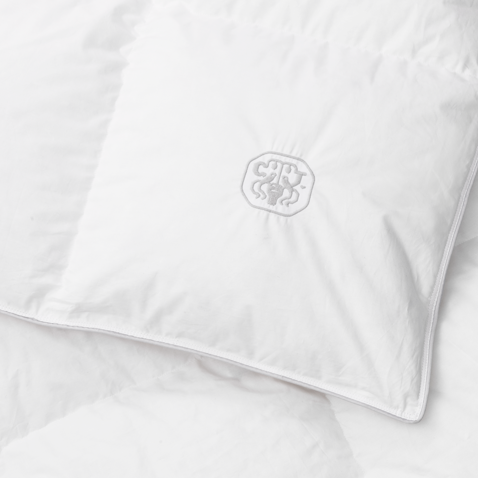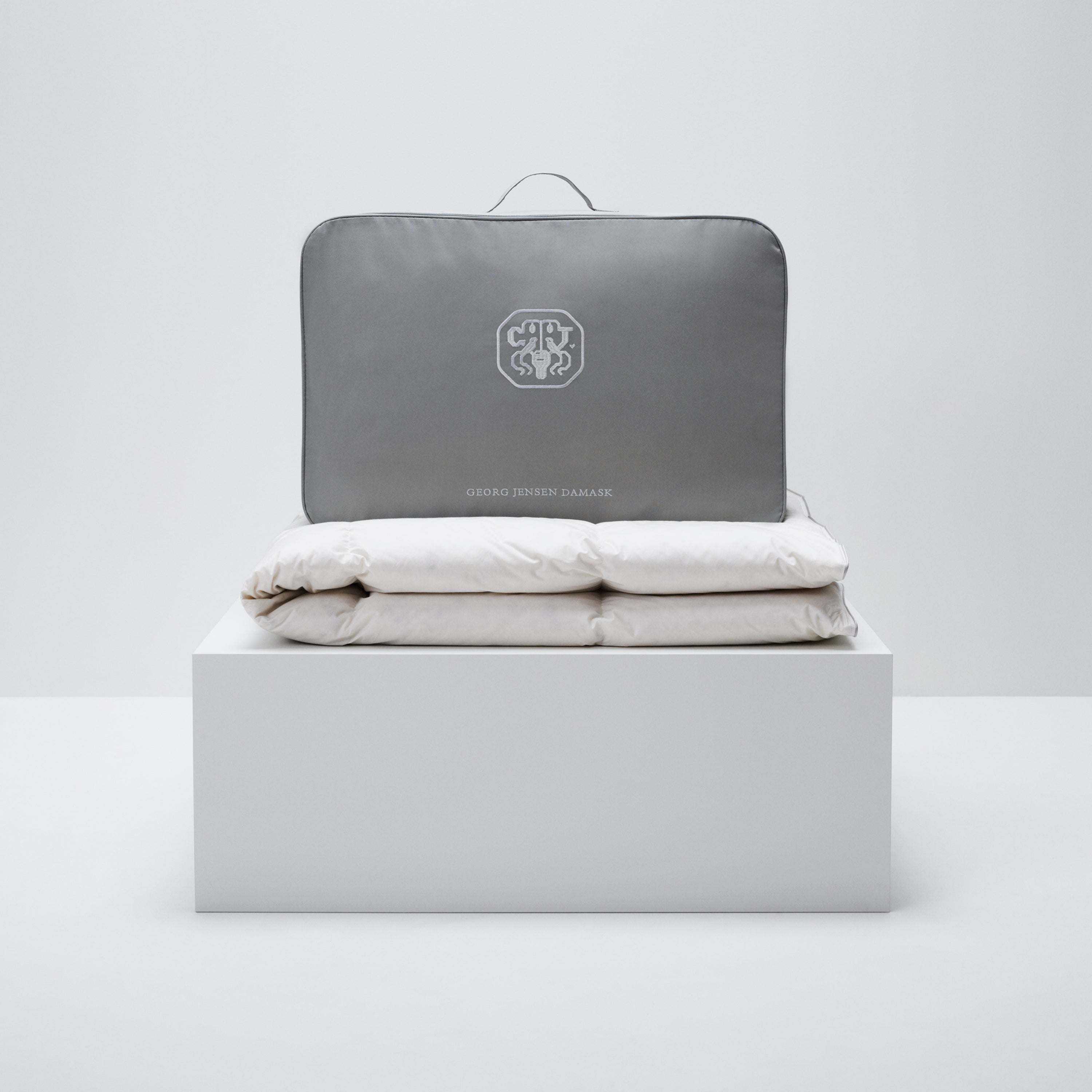 Het iconische logo van Georg Jensen Damask is discreet op het dekbed geborduurd - een symbool van kwaliteit en zorg.