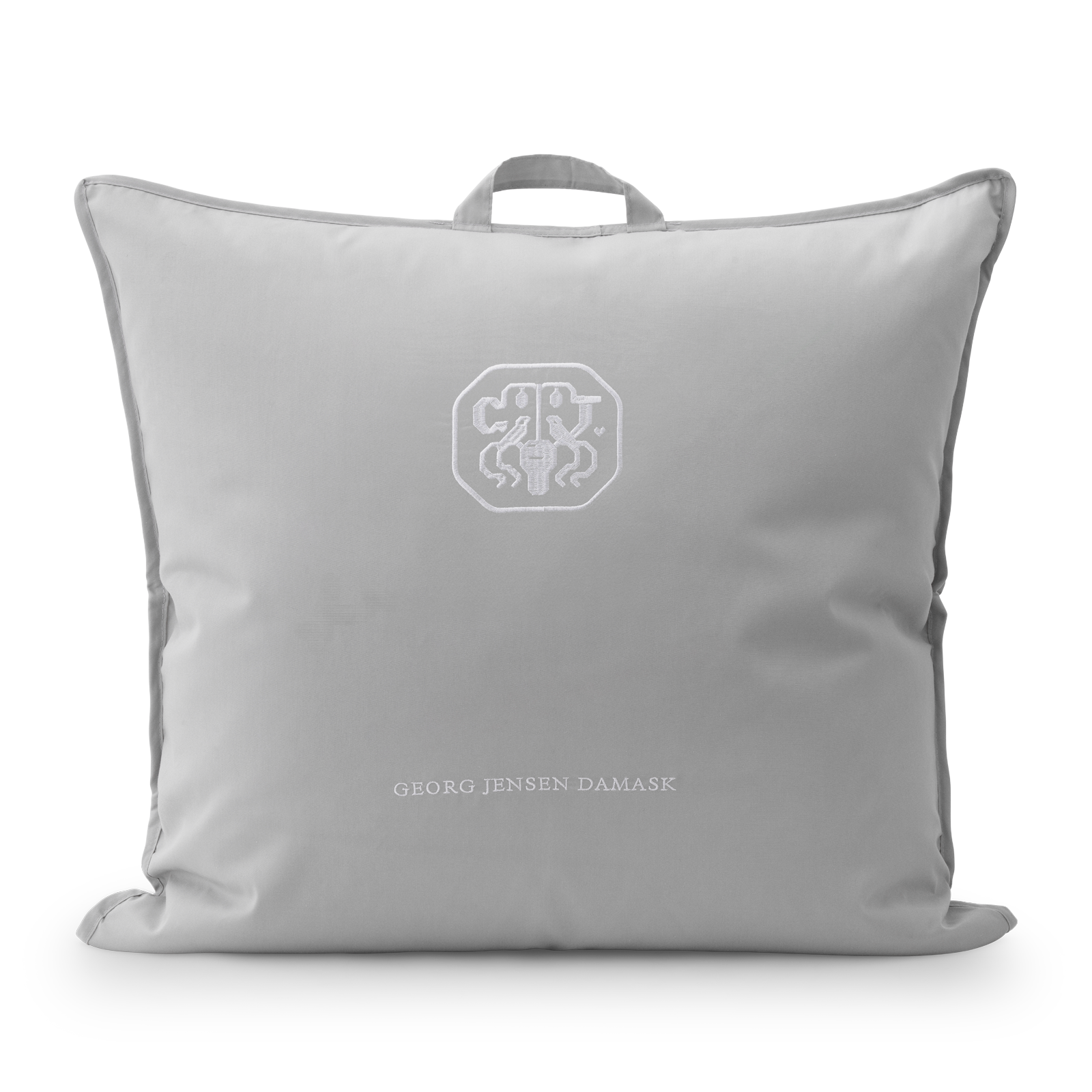 Het kussen is voorzien van het iconische logo van Georg Jensen Damask als een discreet borduursel - een symbool van kwaliteit en zorg.