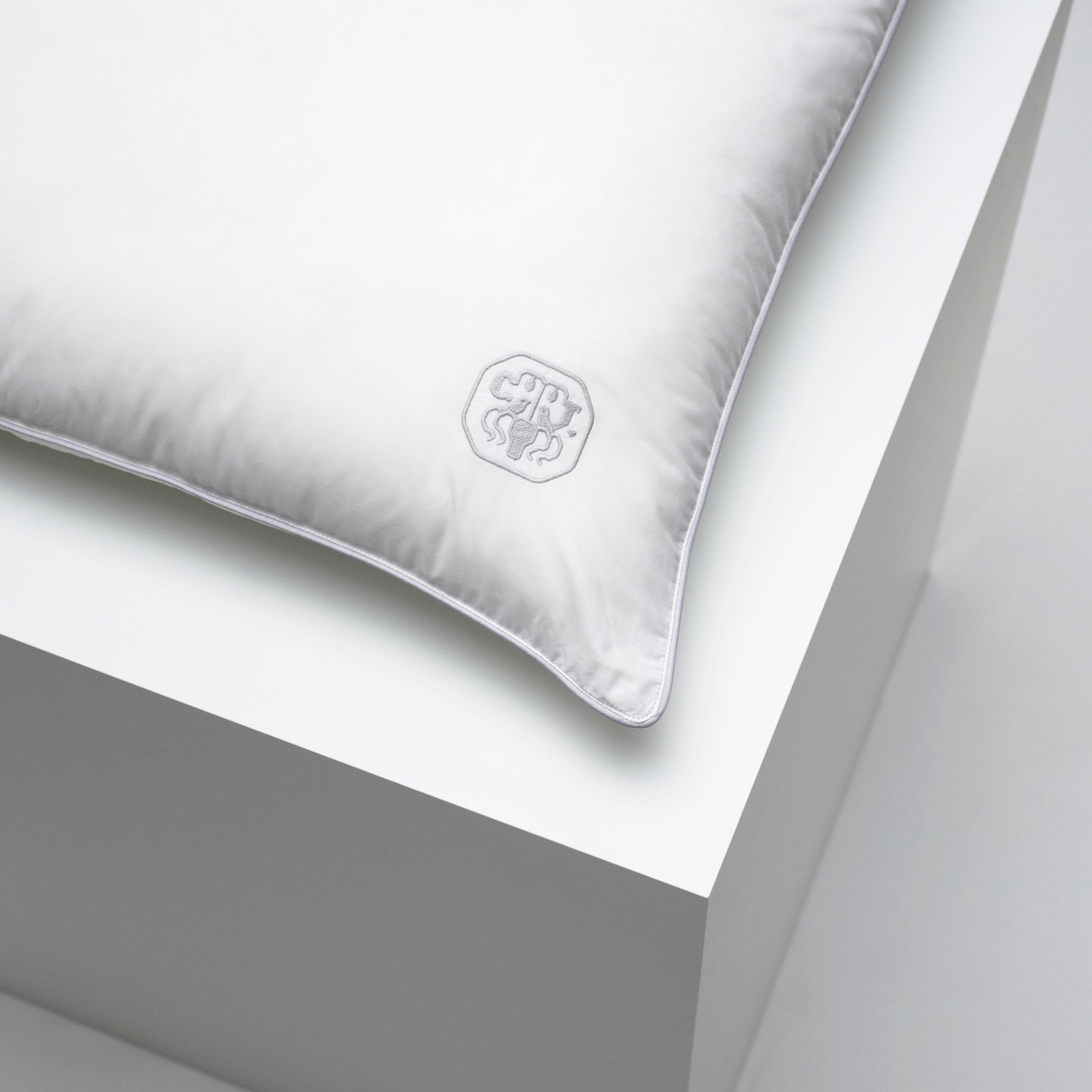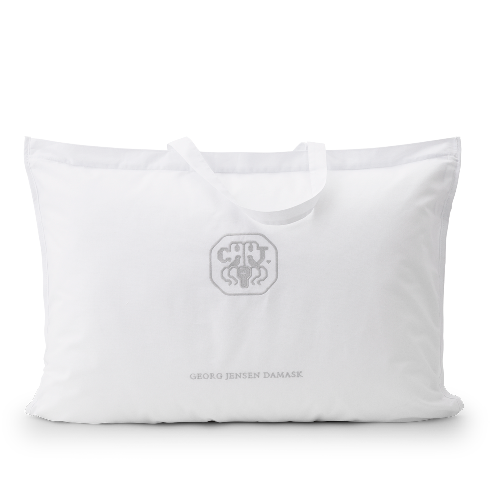 Op het kussen staat het iconische logo van Georg Jensen Damask als een discreet borduursel - een symbool van kwaliteit en zorg.