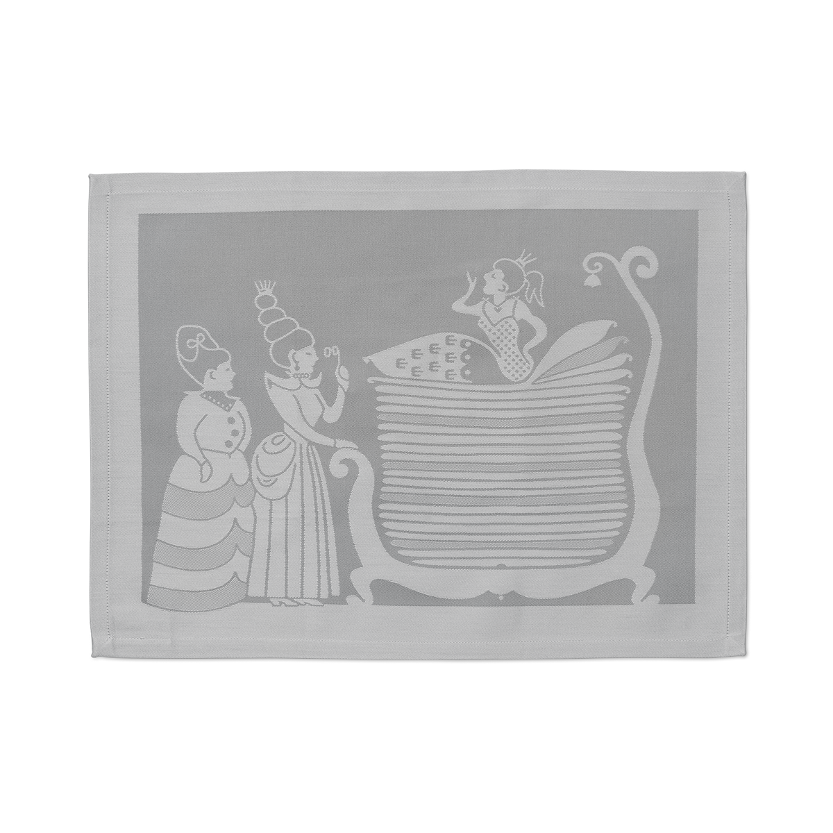 De motieven op de twee placemats zijn afkomstig van het Hans Christian Andersen Andersen tafelkleed, een klassieker in de collectie. We ontmoeten bekende personages uit de sprookjes van Hans Christian Andersen. De sprookjes van Andersen: De prinses die zo vreselijk boven op de kleine erwt sliep onder de vele matrassen en donsdekbedden, zoals alleen een echte prinses dat zou doen. En de zeemeermin die verlangend droomde van een leven op aarde met de prins en uiteindelijk zowel haar betoverende zangstem als haar leven opofferde voor de liefde.