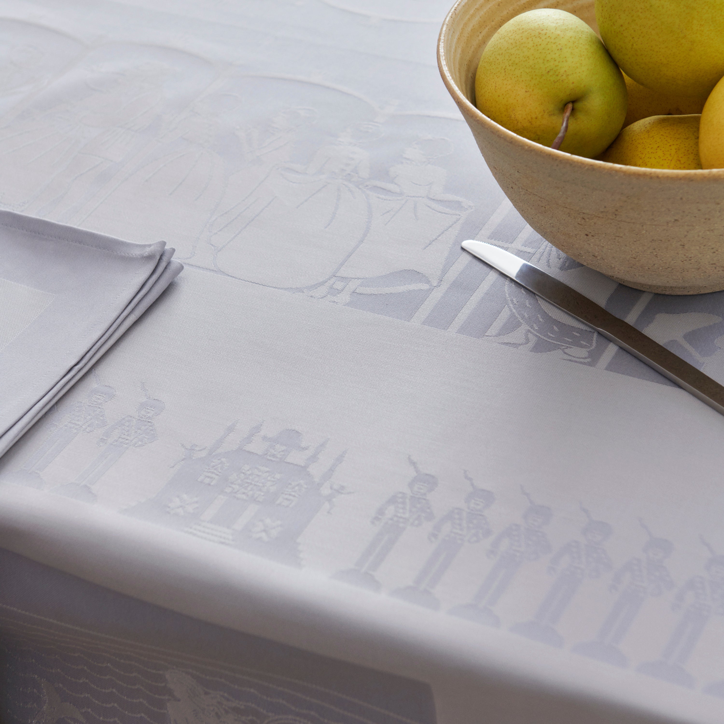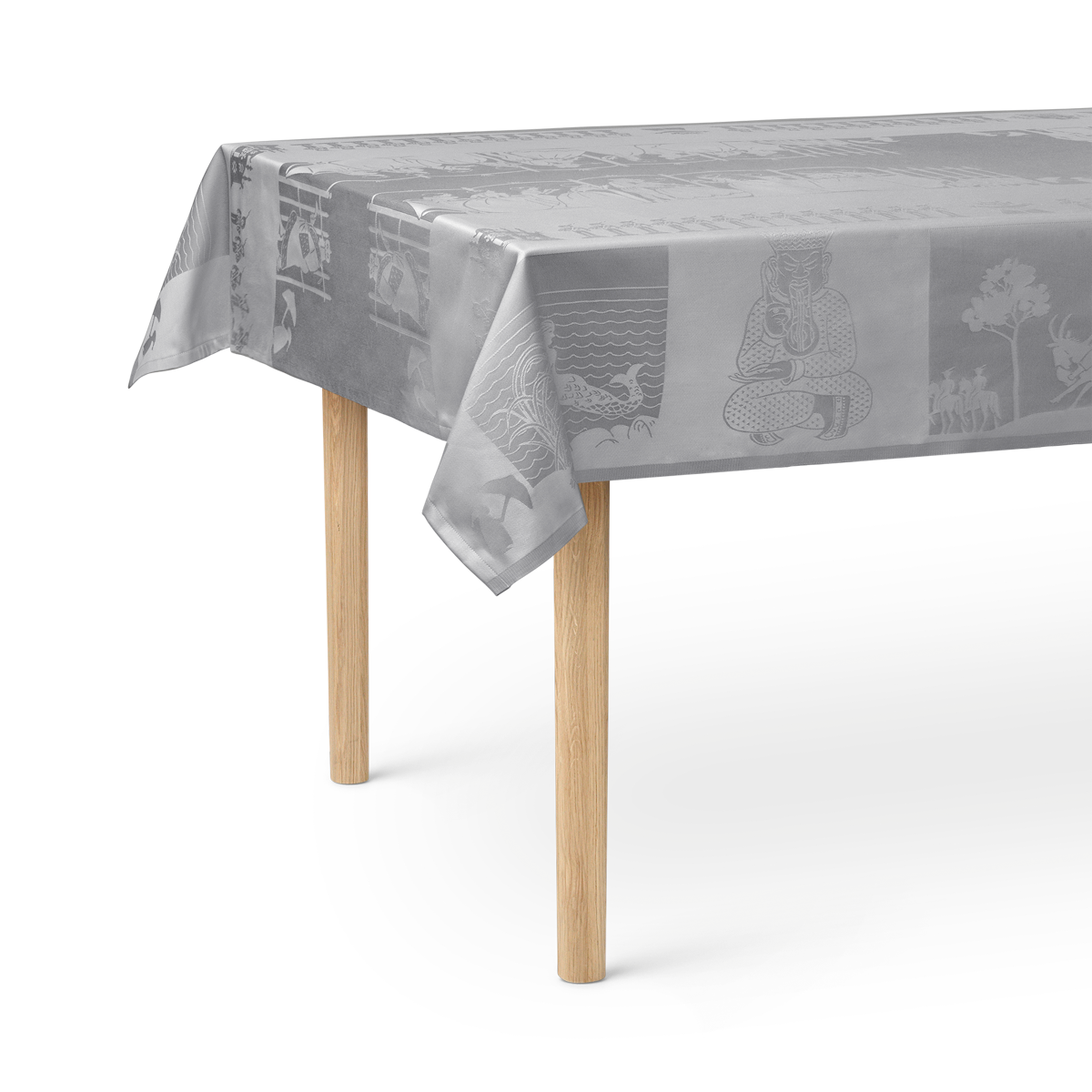 Het damasten tafelkleed in het iconische Hans Christian Andersen ontwerp. Het Andersen-design zit vol met het plezier van verhalen vertellen. Het is een poëtische en stijlvolle toevoeging aan de gedekte tafel en is nu verkrijgbaar in een gloednieuwe, prachtige grijze kleur.