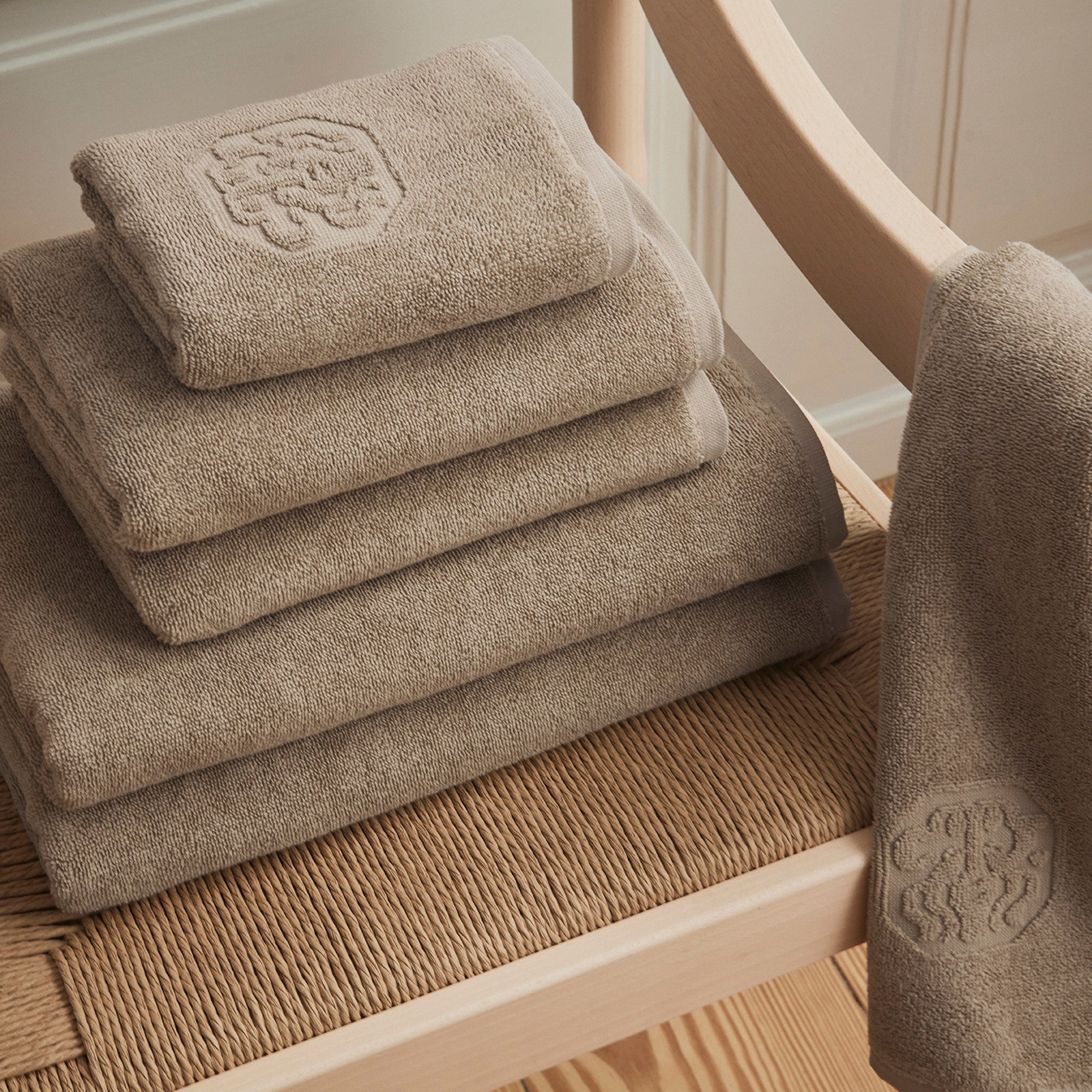 De Damask Terry handdoek heeft een eenvoudige uitstraling met het iconische logo van Georg Jensen Damask ingeweven als elegant detail.