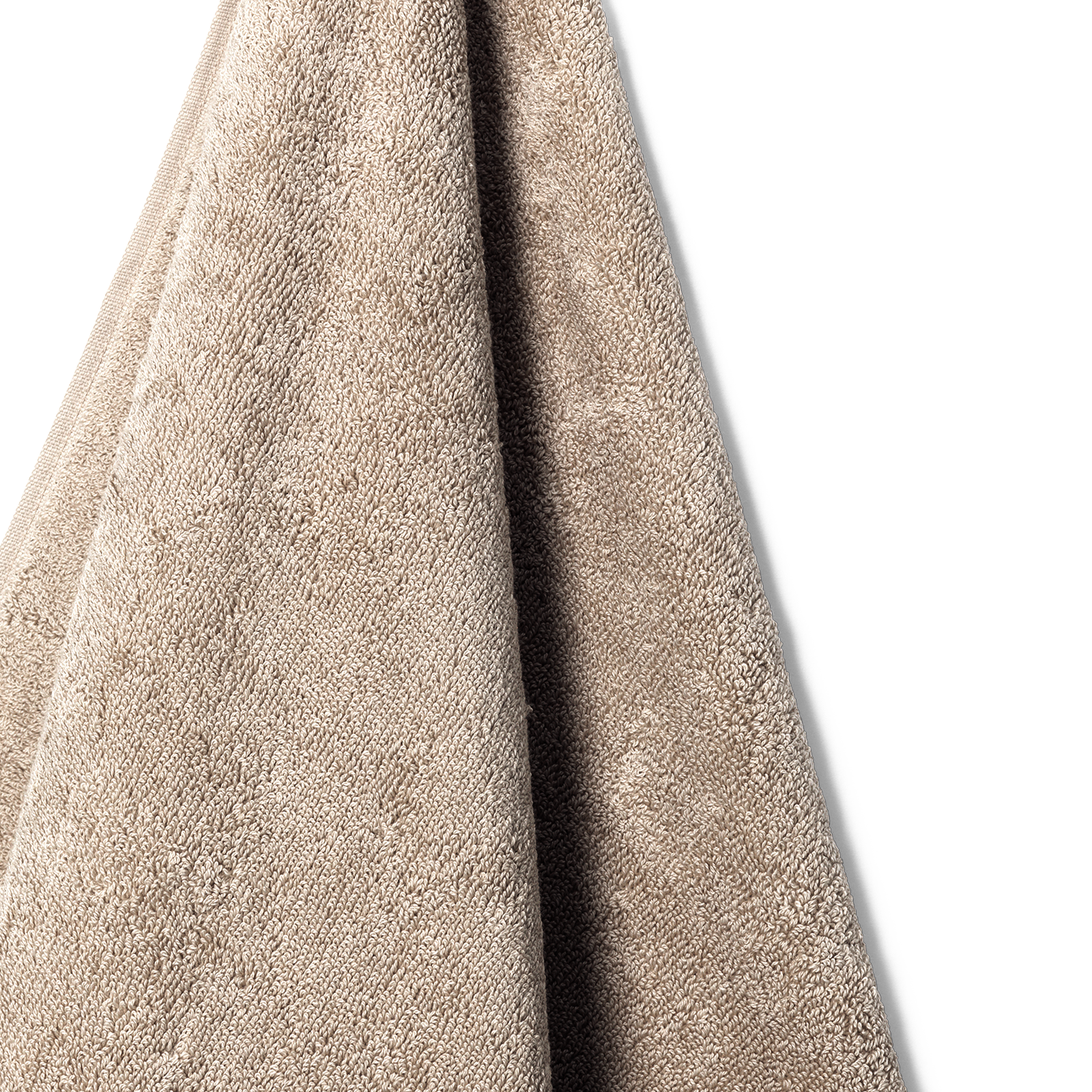 De badstof handdoek is jacquard geweven van 100% katoen met lussen van dubbel getwijnde en gekamde garens waardoor hij zacht, duurzaam en glanzend is.