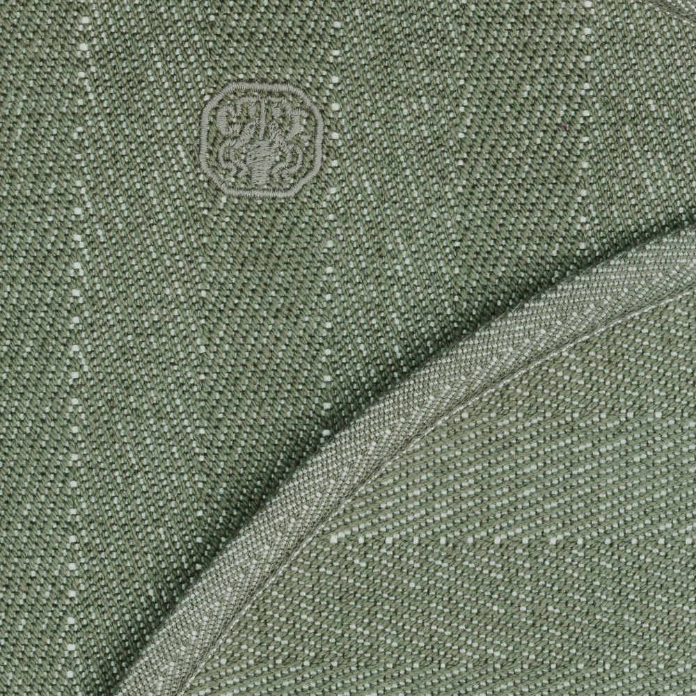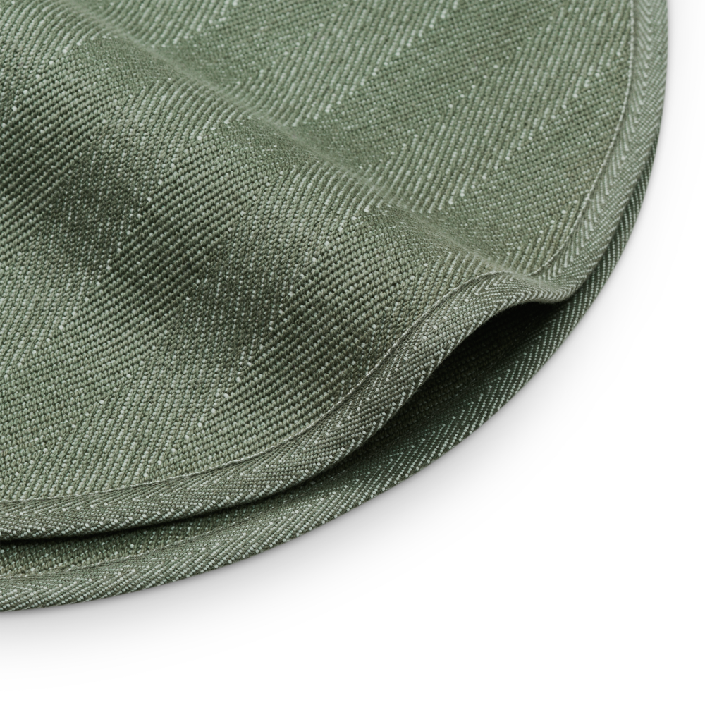 De ronde Herringbone placemat is een visgraat geweven placemat van 100% katoen. De placemat ligt goed op tafel en heeft een klein geborduurd Georg Jensen Damask logo. De Mineral Green variant is een lichtgroene voorbode van de lente.