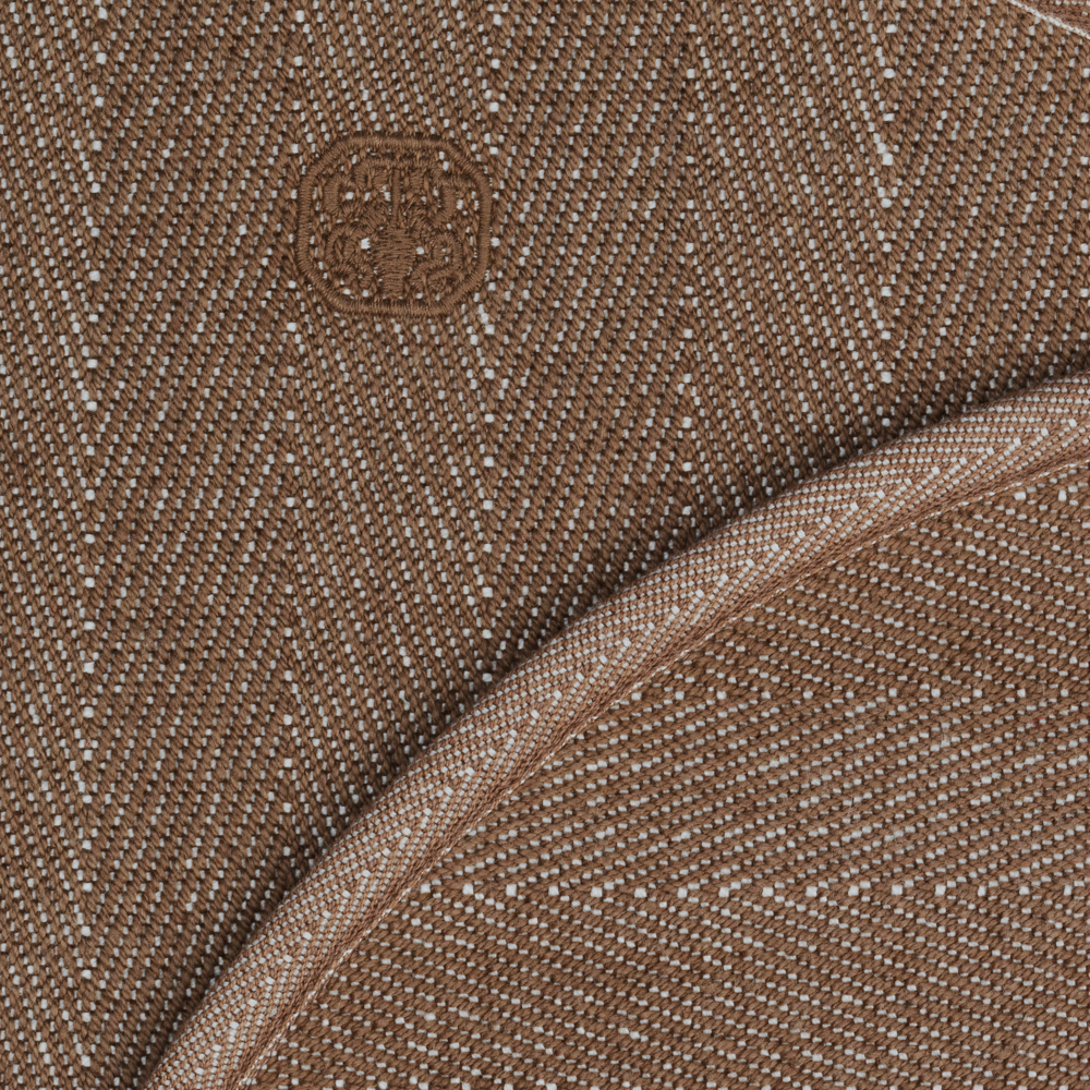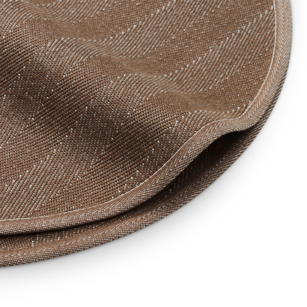 Herringbone is een zwaar visgraat geweven placemat van 100% katoen. Hier in een ronde uitvoering die goed op tafel past en voorzien is van een klein geborduurd Georg Jensen Damask logo. De Walnut bruine kleur is een herfstklassieker die terugkomt in de hele Georg Jensen Damask collectie.