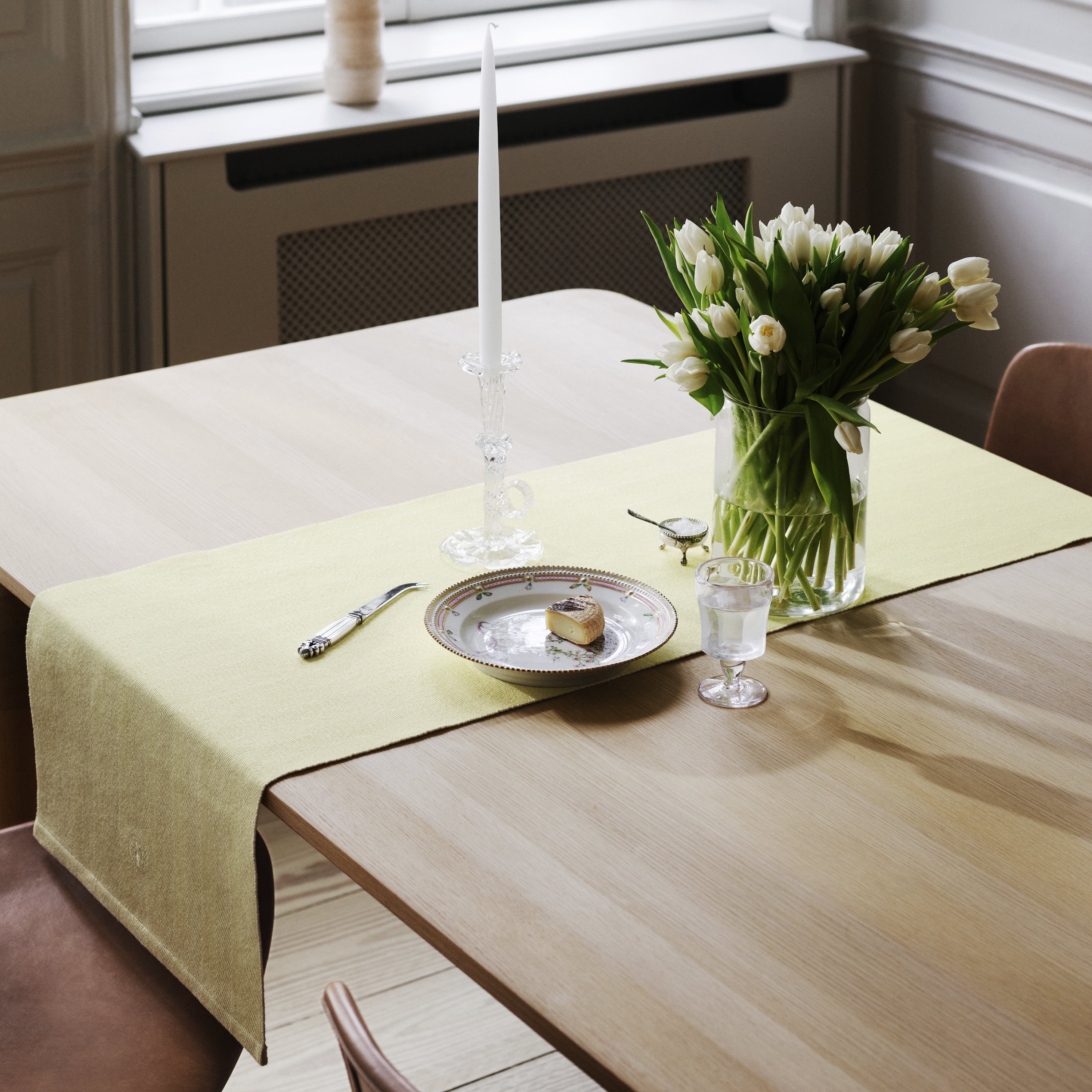 Herringbone is een visgraat geweven tafelloper van 100% zware katoen. Zeer geschikt voor zowel alledaags gebruik als in het weekend. De tafelloper heeft een klein geborduurd Georg Jensen Damast logo en is verkrijgbaar in de kleur Soft Yellow, een felle favoriet.