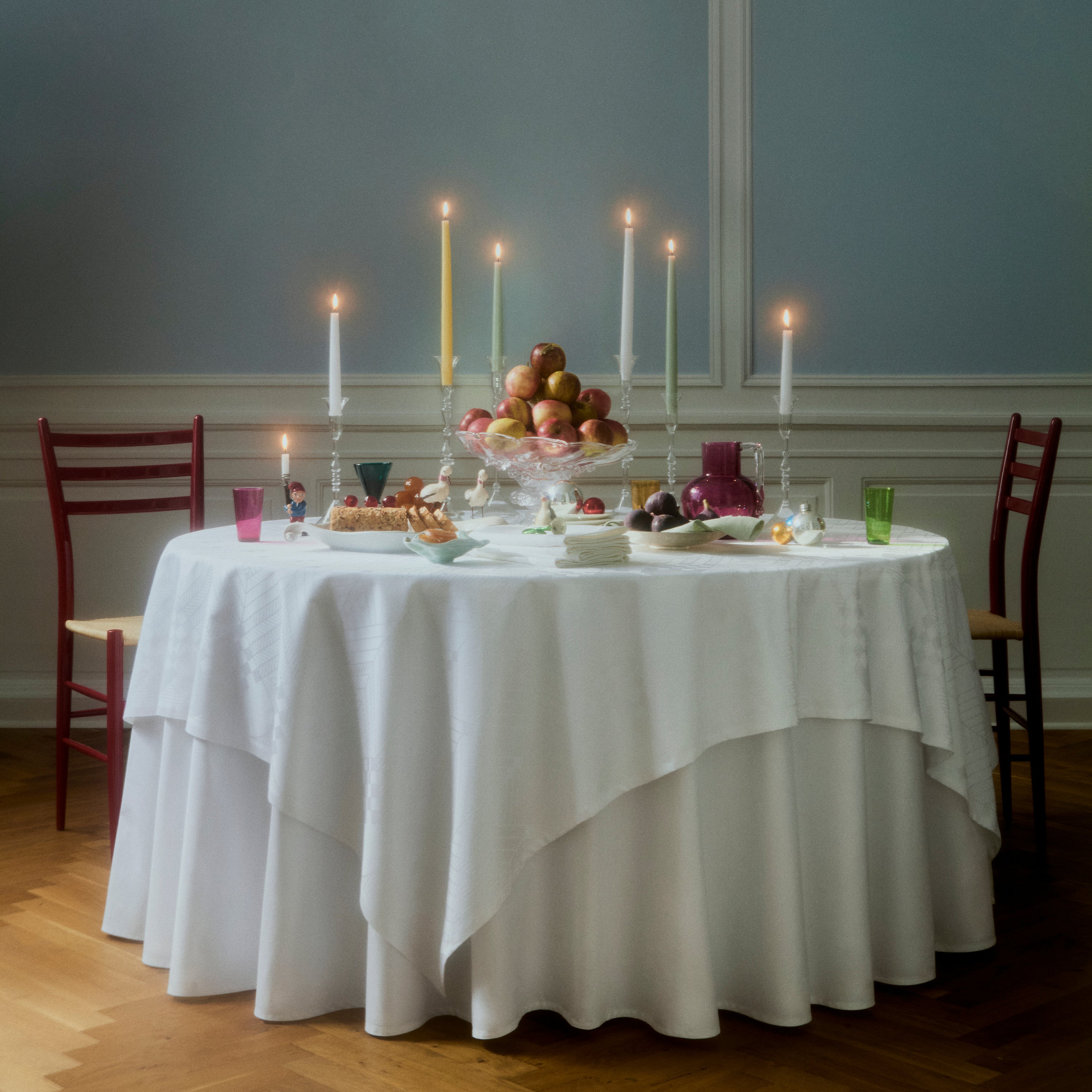 In de witte versie steekt het iconische patroon af tegen een prachtige sneeuwwitte achtergrond, waardoor het een tijdloos element van de gedekte tafel wordt. Een elegant canvas dat kan worden gecombineerd met decoraties in veel verschillende kleuren of klassiek en minimalistisch kan worden gehouden.