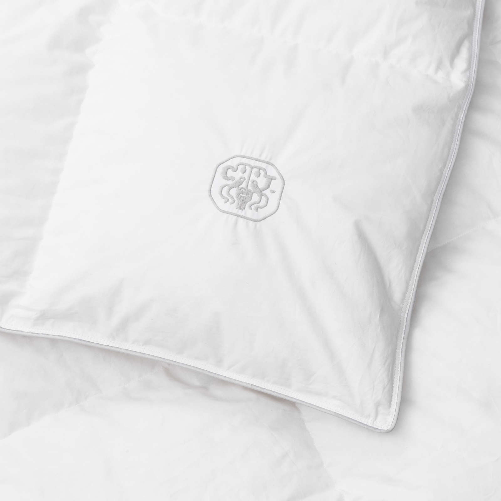 Het donzen dekbed en kussen zijn gevuld met witte Europese klasse 1‑ganzendons. Het dekbed heeft een hoog vulvermogen met luchtige dons, waardoor een zeer licht product met een goed isolerend vermogen ontstaat. De dons is ademend en kan overtollige lichaamswarmte opnemen, zodat de temperatuur onder het dekbed de hele nacht aangenaam blijft. De perkalgeweven tijk van soepele katoengaren is speciaal afgestemd op de vulling en zorgt voor een zachte, matte afwerking.