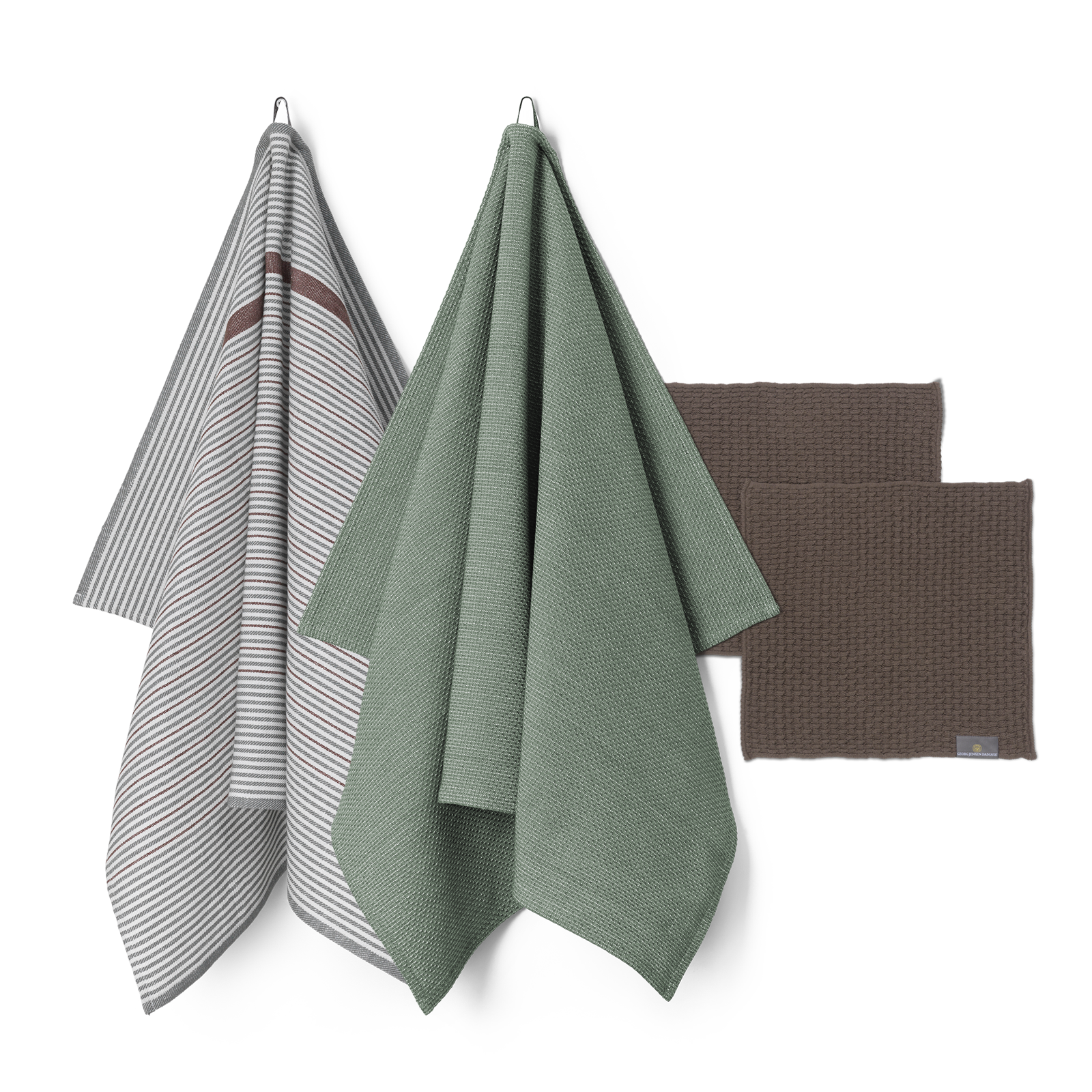 Køkkenpakke med 1 stk. Comet viskestykke og 1 stk. 1959 viskestykke i farven Mineral Green og 2 stk. Nors karklude i farven Walnut.