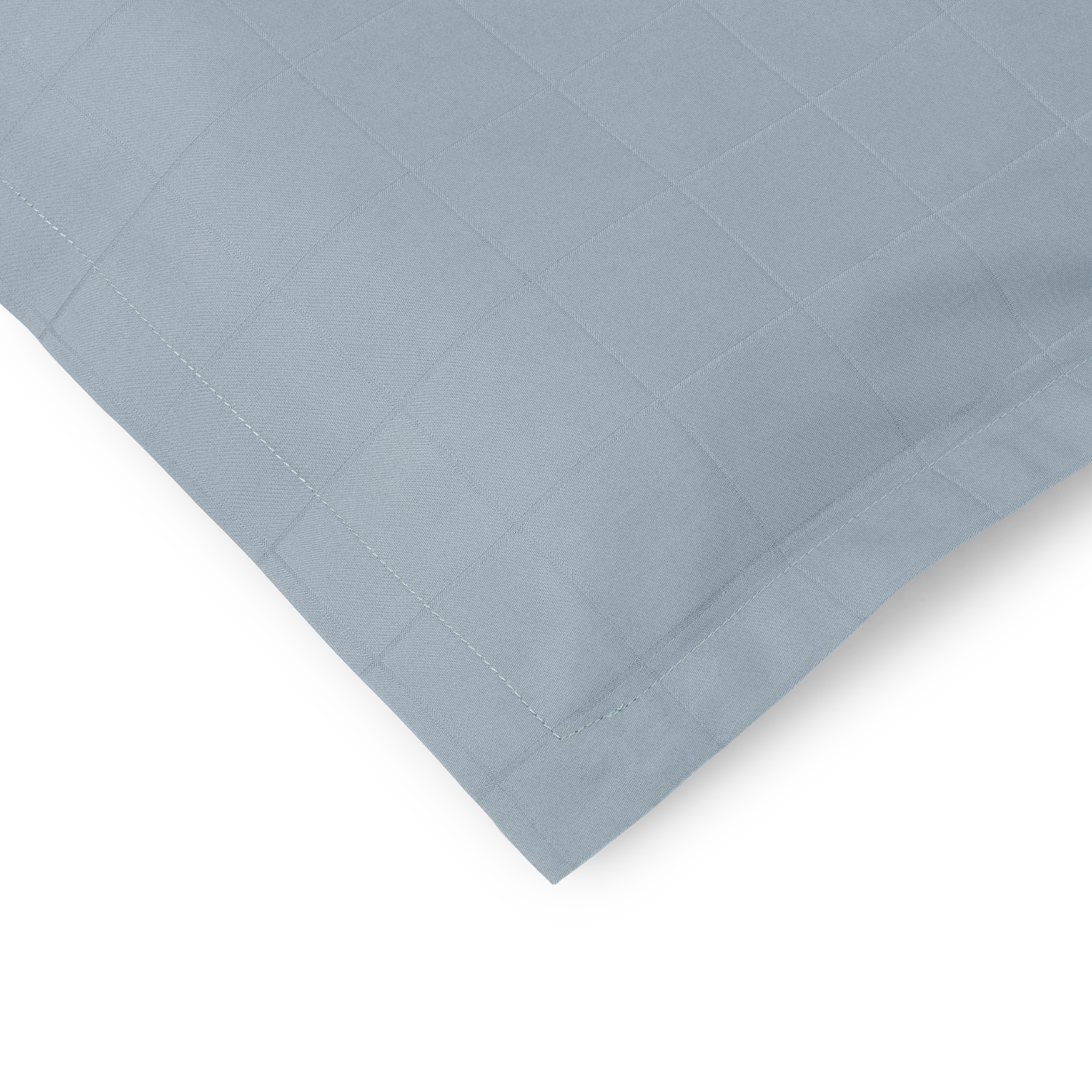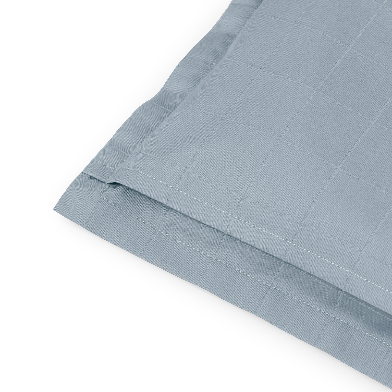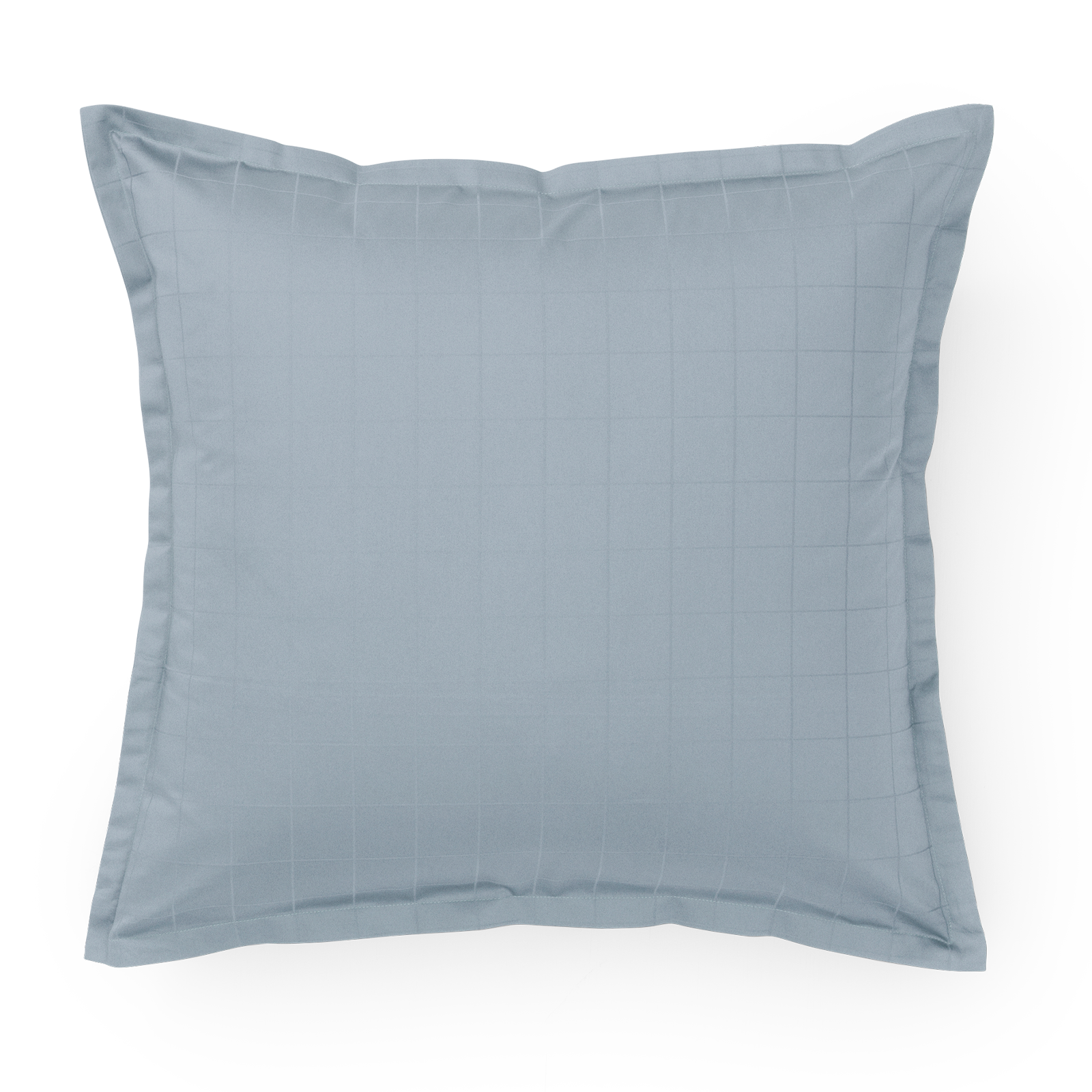 Light Squares kussensloop met een licht grafisch patroon dat wordt benadrukt in de fijne satijnbinding. Light Squares is geweven van 100% gekamd katoen, wat zorgt voor een sterke en zachte afwerking. De kleur Blue Haze is een lichte en gedempte blauwtint.