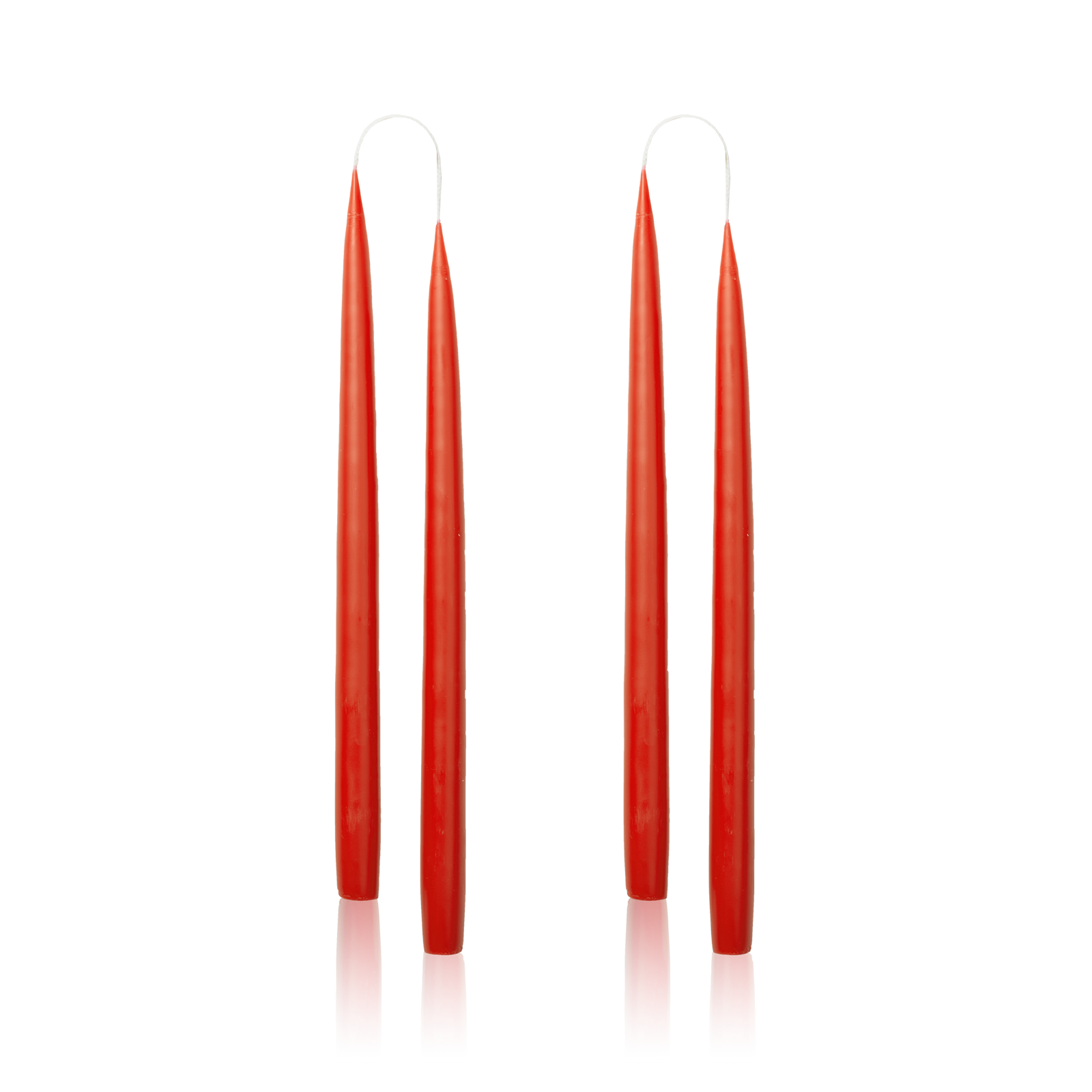 De kaarsen zijn met de hand gedompeld, effen van kleur en gemaakt van 100% volledig geraffineerde paraffine van de hoogste kwaliteit. Elke kaars meet 35 cm en heeft een brandtijd van 15 uur.