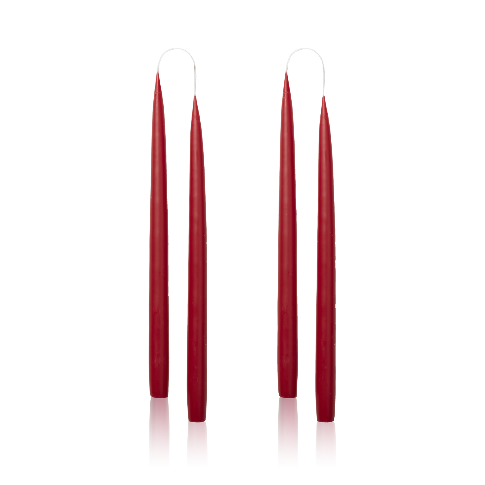 Prachtige lange kaarsen in een dieprode kleur. De kaarsen hebben een elegant ontwerp waardoor ze een stijlvolle toevoeging zijn aan de gedekte tafel of rondom het huis. In de dieprode kleur zijn de kaarsen bijzonder geschikt voor de kersttafel, een verjaardagsfeestje of een romantisch diner voor twee.