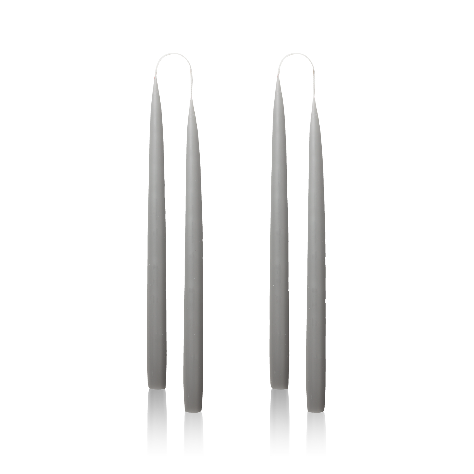 Elegante, lange kaarsen in een tijdloze grijze kleur. De kaarsen hebben een strak en verfijnd ontwerp waardoor ze gemakkelijk te combineren zijn met de rest van de inrichting.