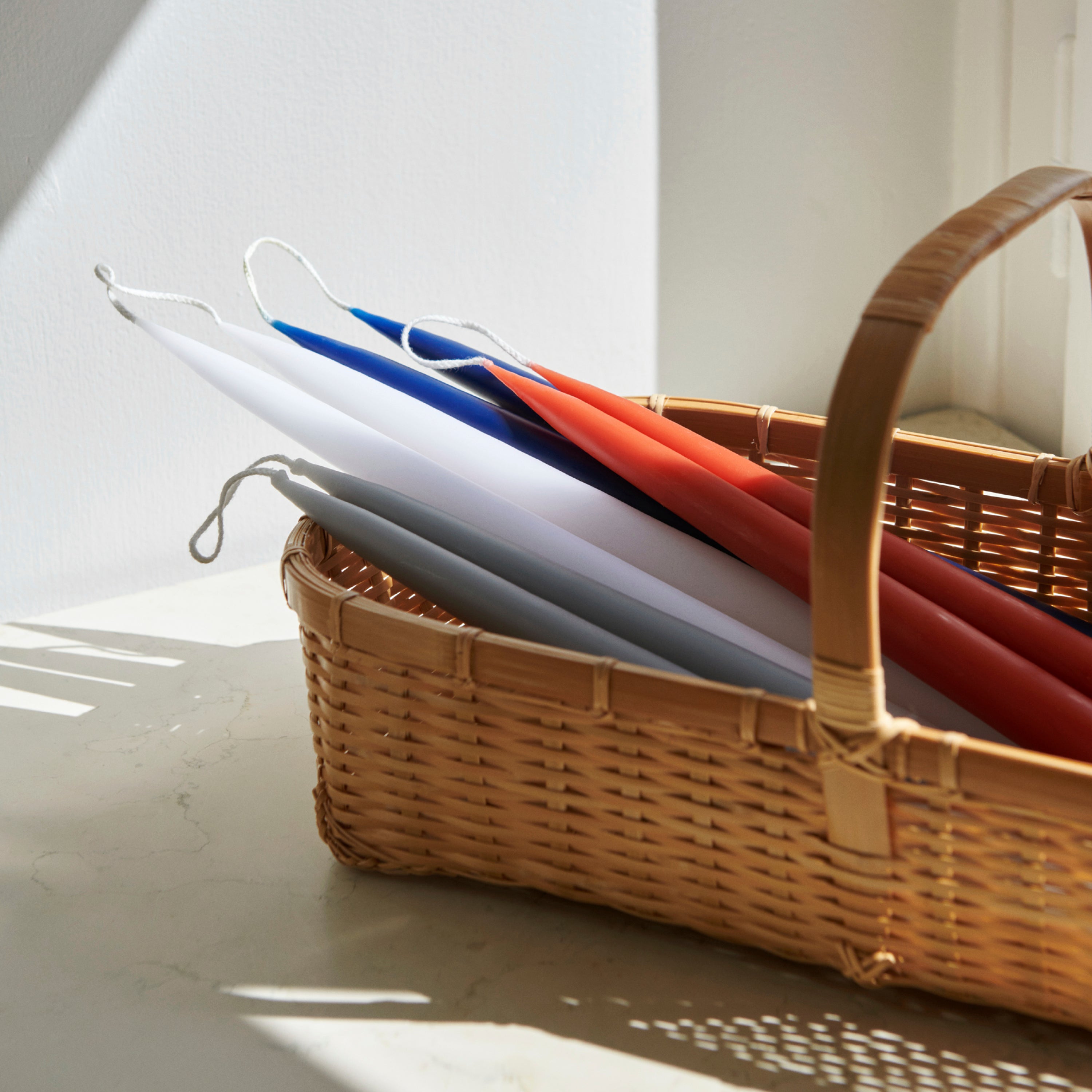 De kaarsen zijn met de hand gedompeld, effen van kleur en gemaakt van 100% volledig geraffineerde paraffine van de hoogste kwaliteit. Elke kaars meet 35 cm en heeft een brandtijd van 15 uur.