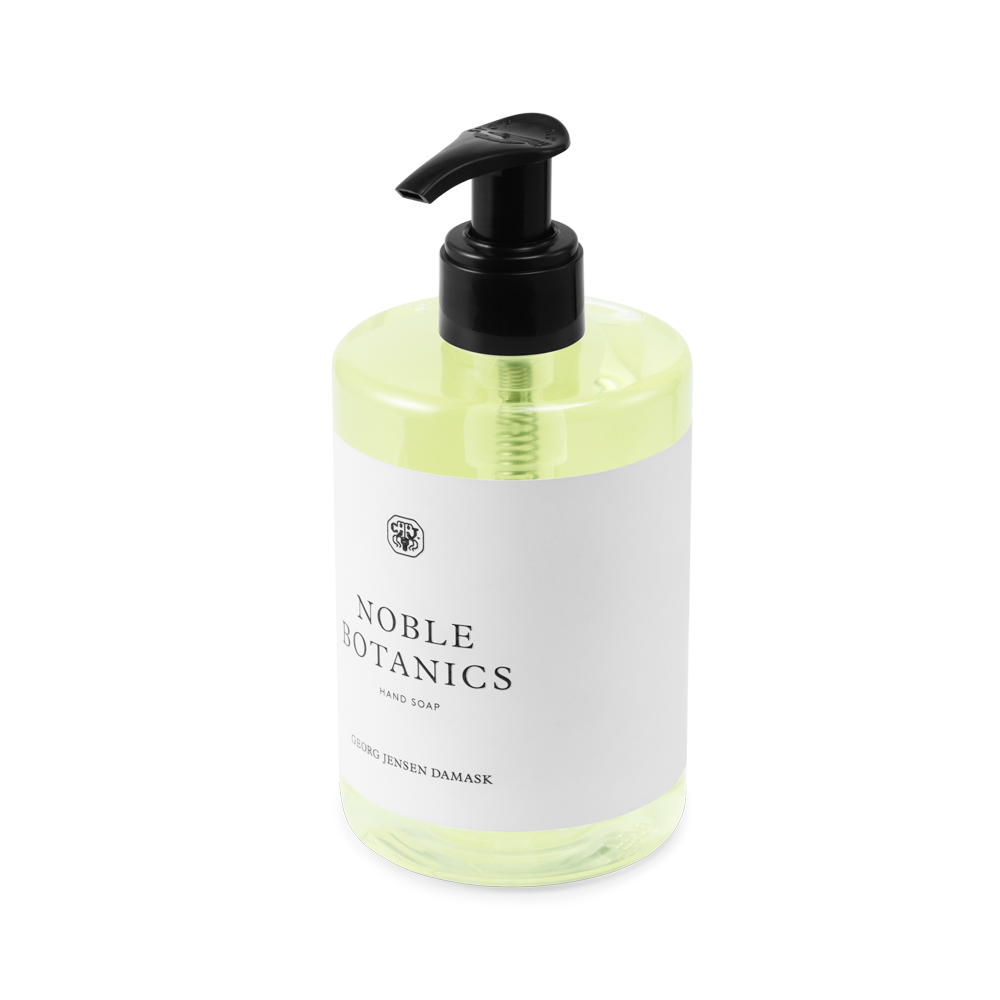Noble Botanics handzeep van Georg Jensen Damask is verrijkt met hydraterend katoenextract en noten van rozemarijn, geranium en patchoeli. De zeep reinigt je handen op milde wijze en zorgt voor een moment van welzijn.