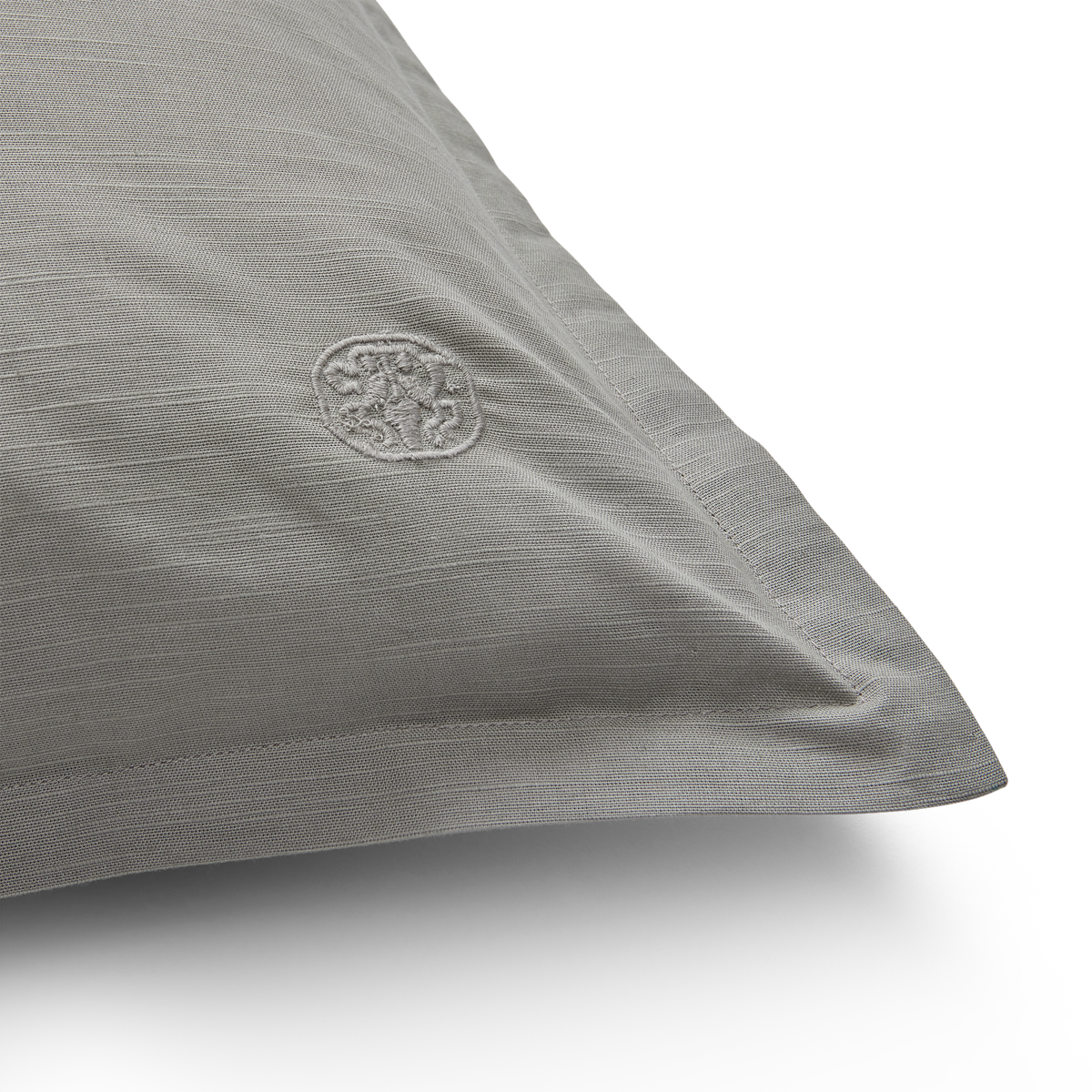 In de klassieke lichtgrijze kleur is het kussen een rustig element in het interieur. Een sprei is verkrijgbaar in hetzelfde ontwerp.