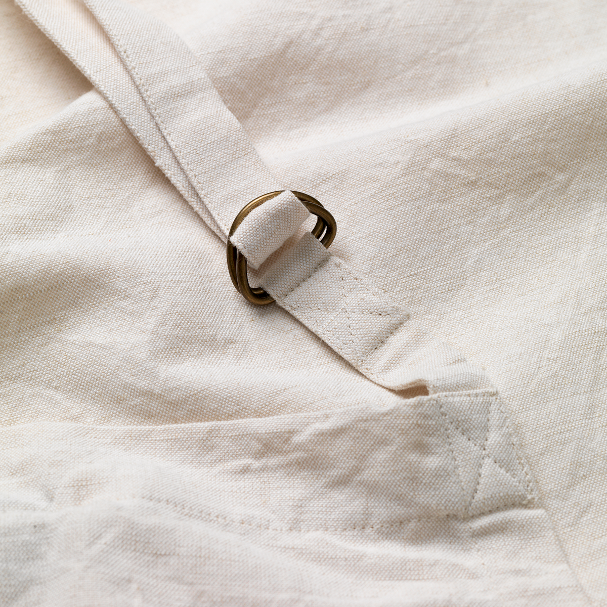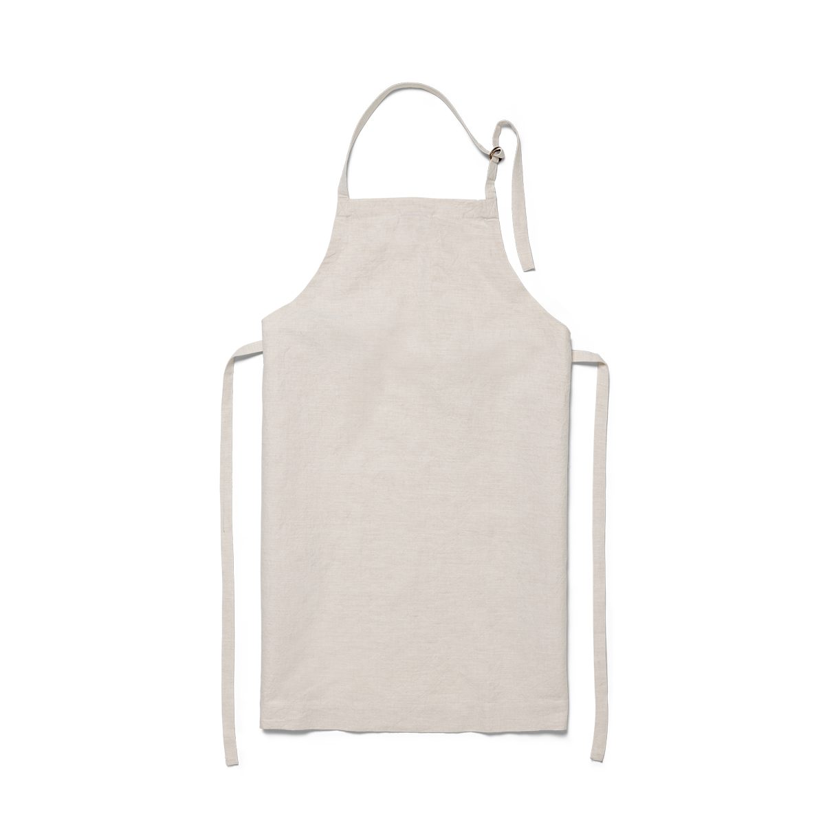 Het lichtbeige gemêleerde weefsel geeft het schort een eenvoudige en tijdloze uitstraling.