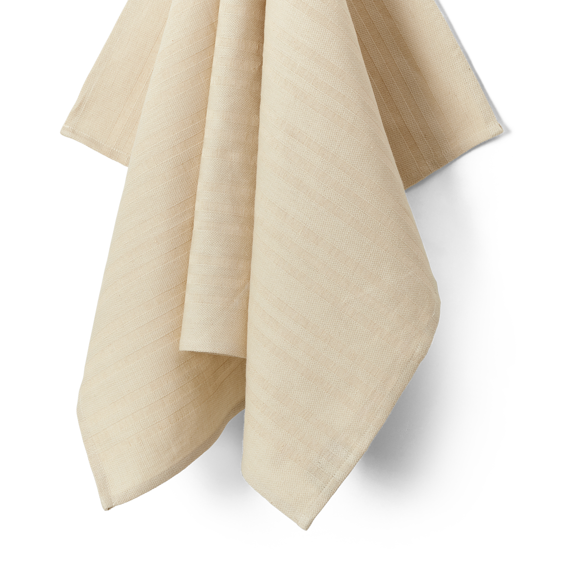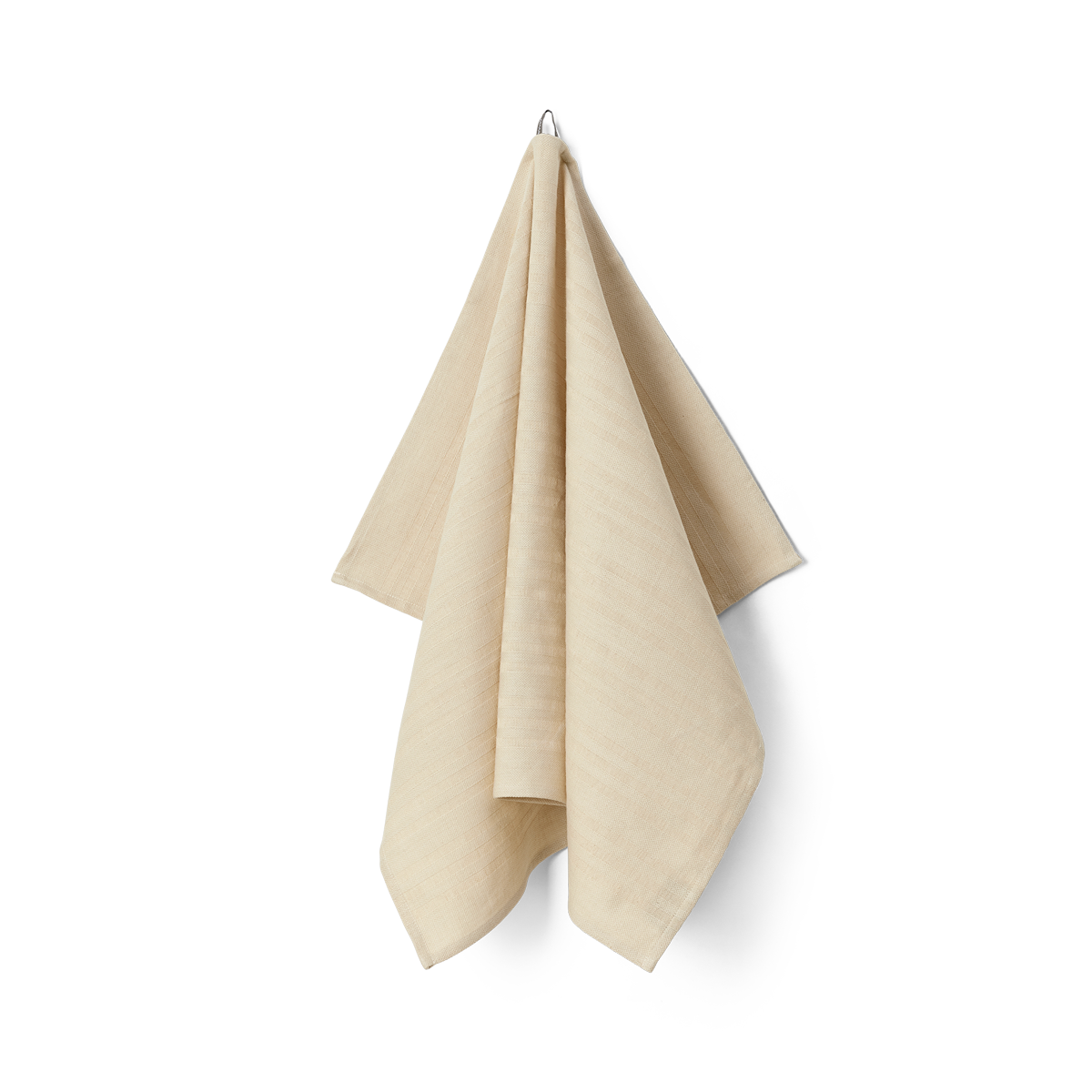 De theedoek in lichtbeige past goed bij de keukenhanddoek 1959 en Original Weave in dezelfde tint.