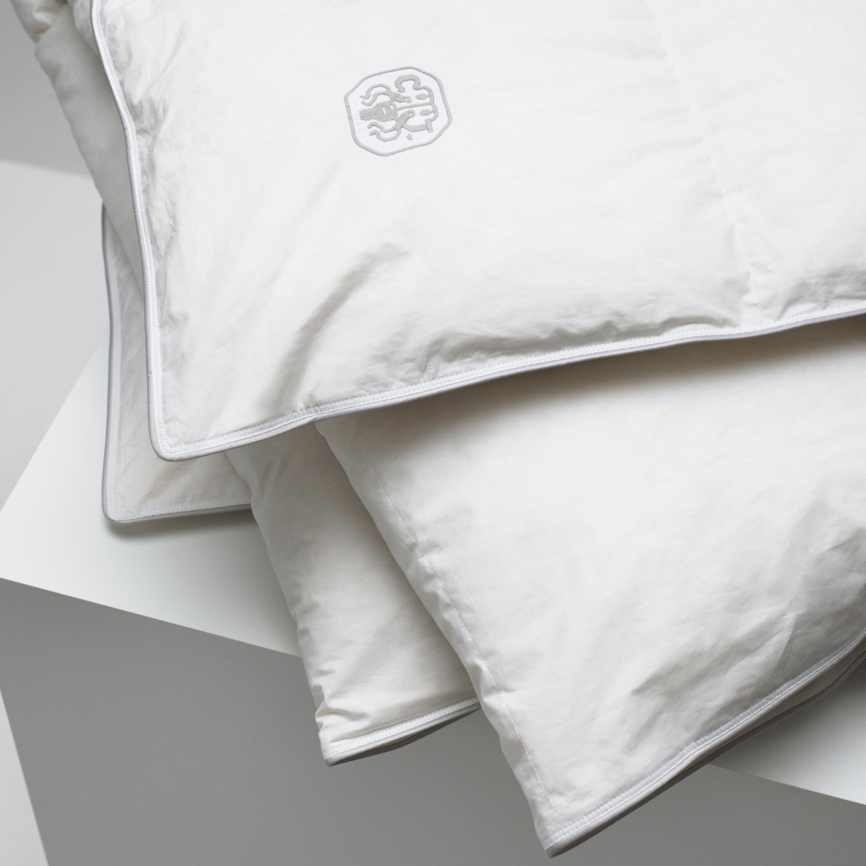 Het dekbed is voorzien van het iconische logo van Georg Jensen Damask als een discreet borduursel - een symbool van kwaliteit en zorg.