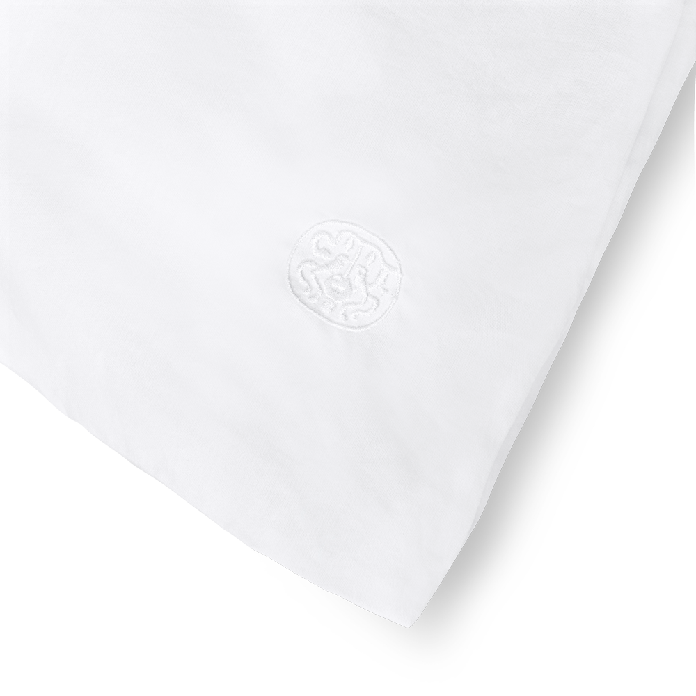 De monochrome uitdrukking met het grote spel van tonen in de kussensloop met envelopsluiting en geborduurd logo kan worden gecombineerd met elke persoonlijke stijl, waardoor Percale een geweldig alternatief is voor een elegante look in elke slaapkamer met de nadruk op luxe en zelfverwennerij.