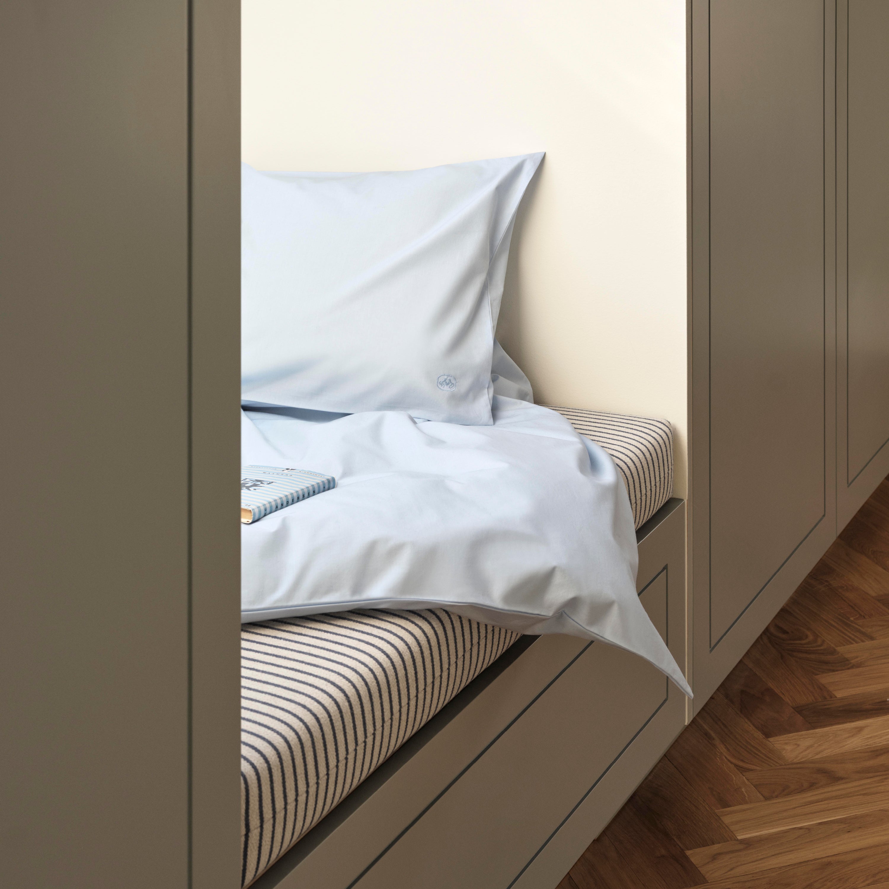 Percale is kwaliteitsbedlinnen voor kinderen. Het zachte beddengoed is geweven van 100% biologisch katoen en heeft een klassiek en eenvoudig ontwerp met een klein geborduurd logo als leuk detail. De Percale weving maakt het bedlinnen duurzaam en ademend, en de stof heeft een frisse en uitnodigende uitstraling.