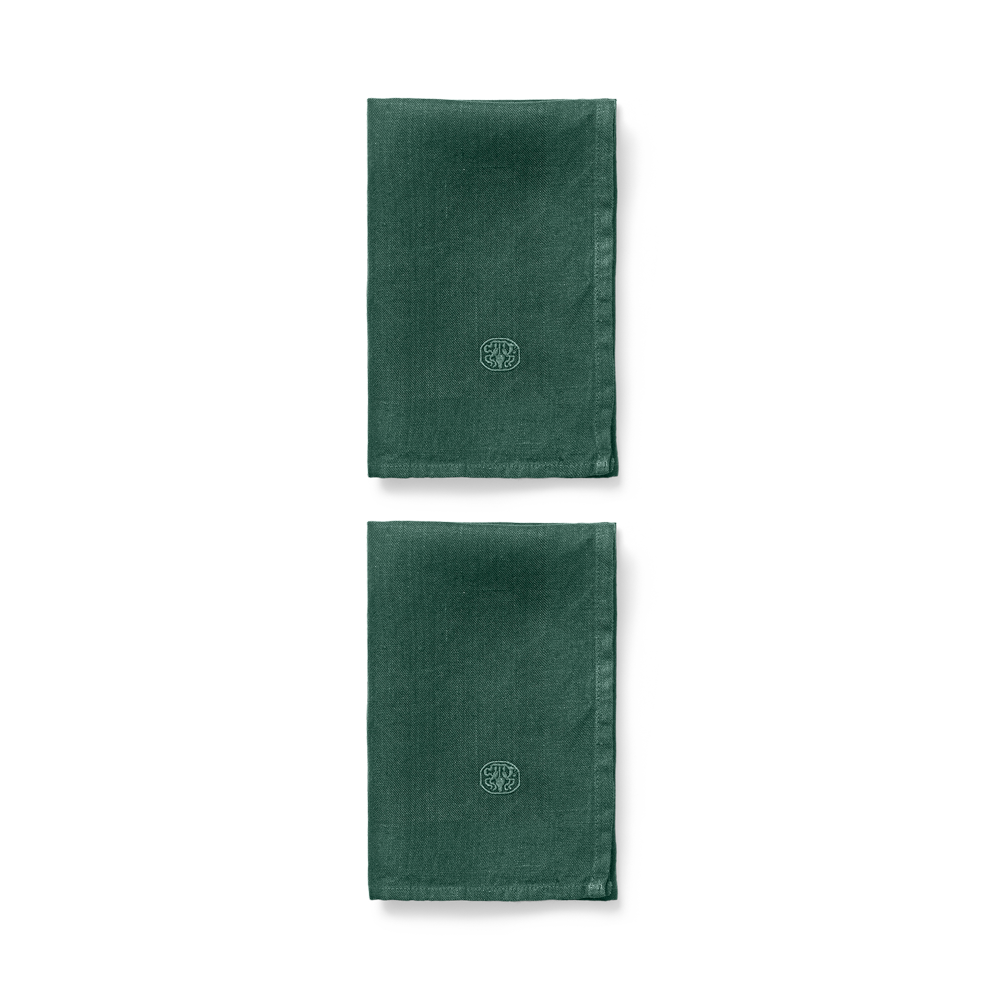 Met zijn eenvoudige ontwerp en diep donkergroene kleur is de linnen servet met geborduurd logo een prachtige aanvulling op tafel. De groene kleur creëert een speciale kerstsfeer zoals vroeger.