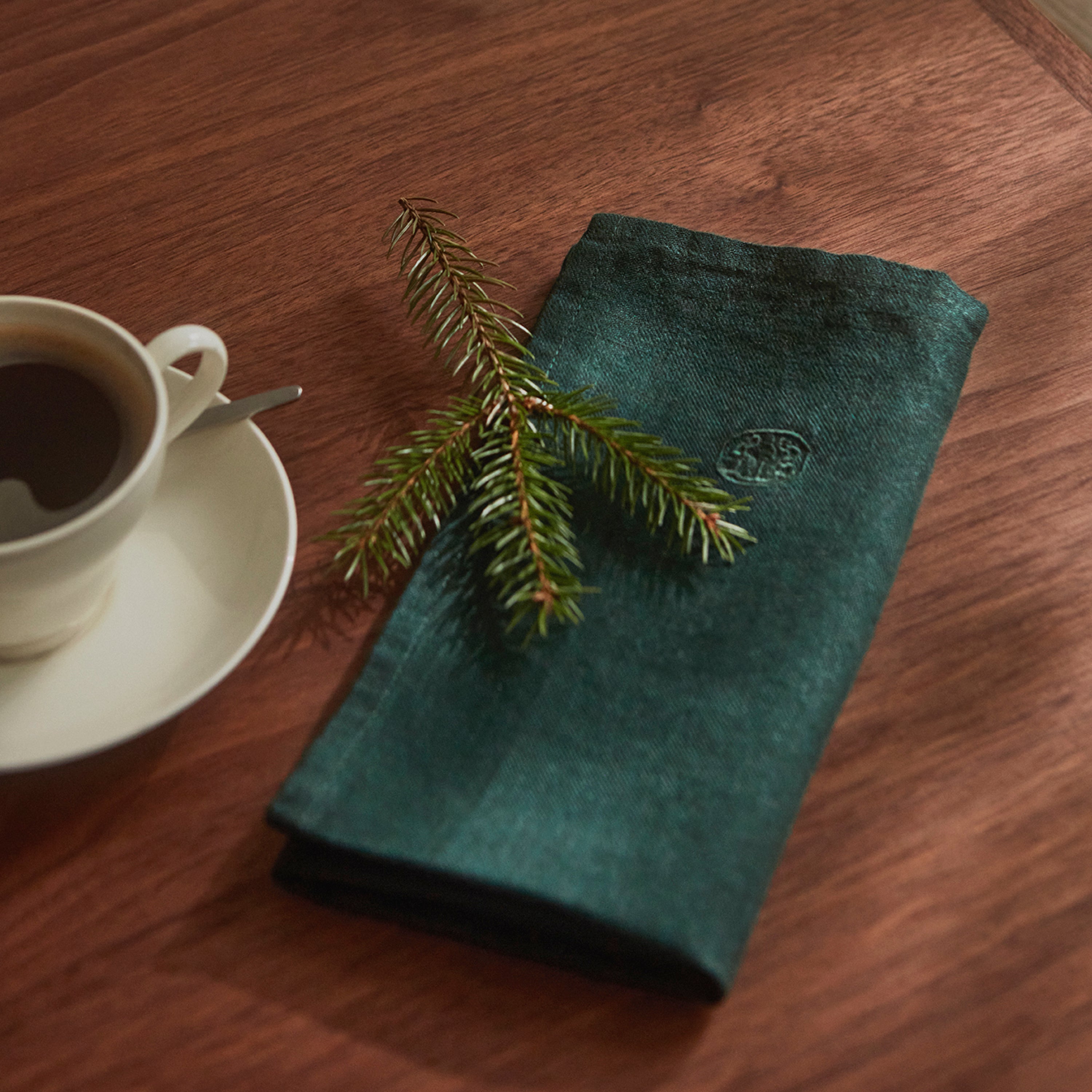 De zachte donkergroene linnen servet is perfect voor alle kerstbijeenkomsten. De keperbinding met fijn linnen garen van de hoogste kwaliteit en de karakteristieke rand geven de linnen servet een lichte en Scandinavische uitstraling.